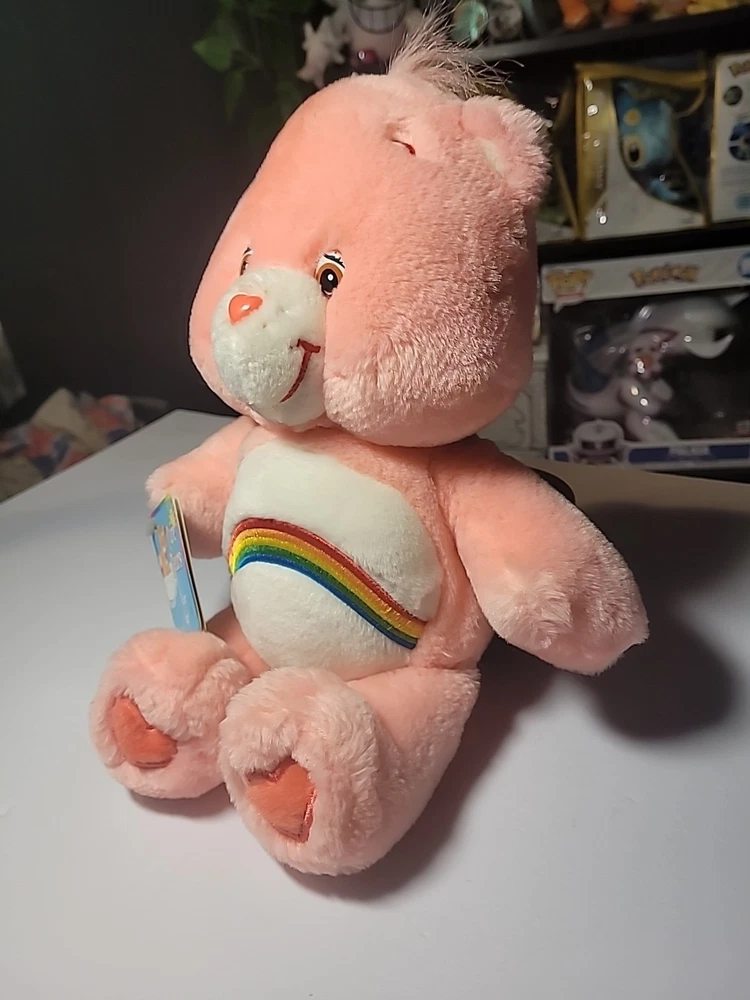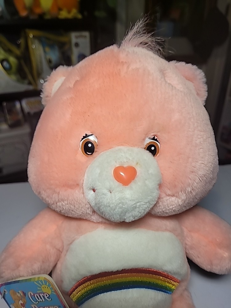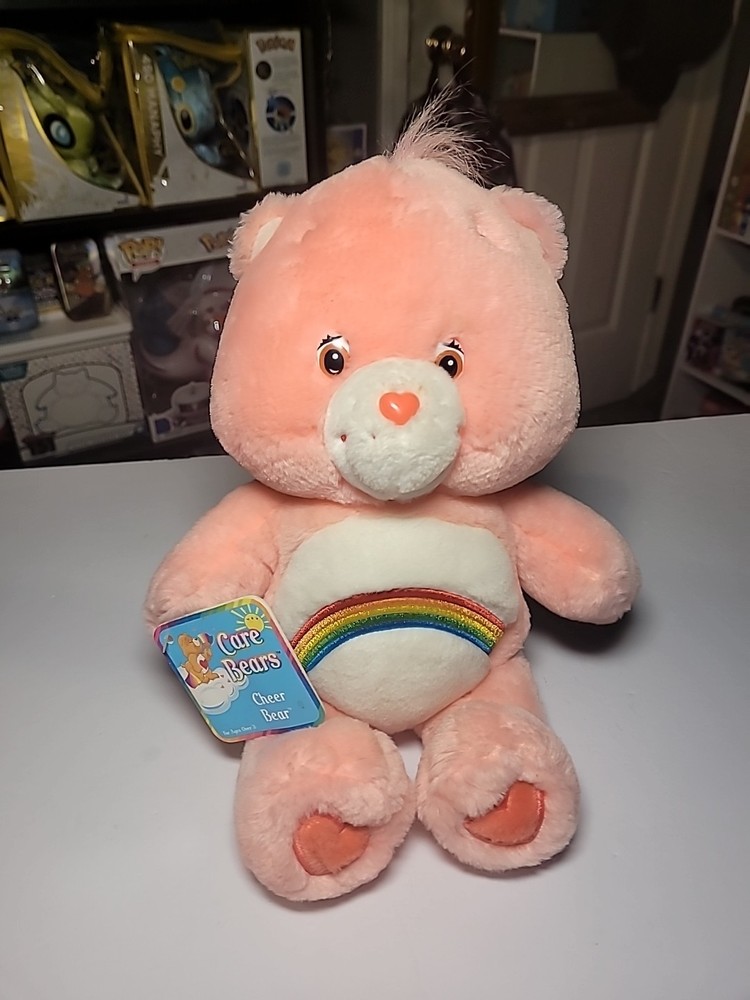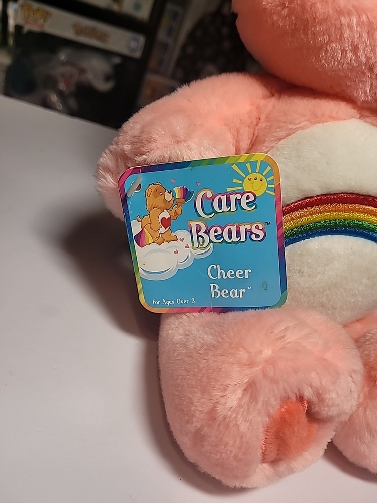 The Vintage Care Bears 13" Cheer Bear Stuffed Plush is a retired collectible from 2002, featuring the pink Rainbow Hearts design. Has the tag on it still but the bear needs a little cleaning which can be seen within the pics! This original plush bear, part of the Care Bears franchise, stands at 13 inches tall and is made of plush material. With brown eyes and a cute Cheer Bear character, this vintage item is a must-have for collectors and fans of the Care Bears series. Perfect for children aged 3 and up, this nostalgic bear is a charming addition to any collection. If you have any questions please ask away! Check out my store for other listings!!