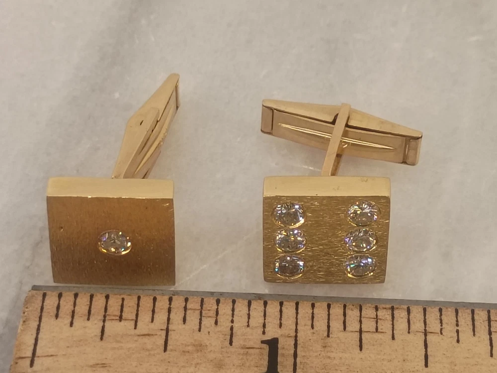 Vintage 14K Solid Yellow Gold Dice Shaped Cufflinks Stamped M&M + Diamonds 11.5g