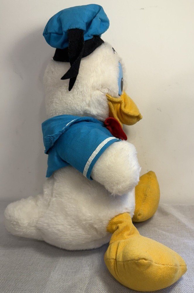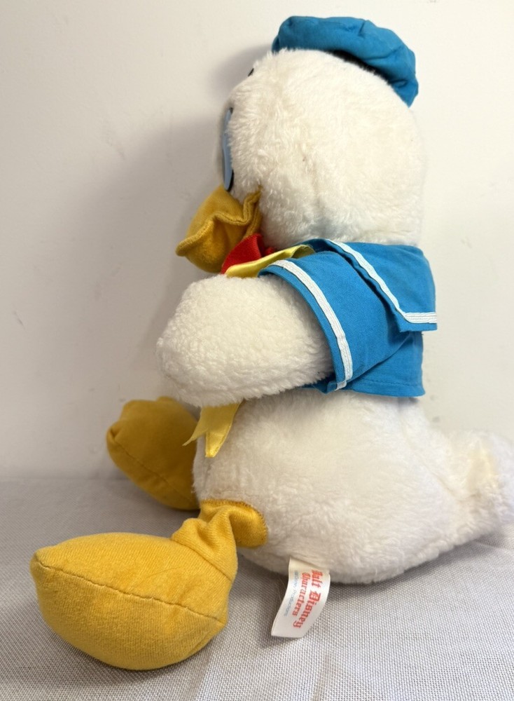 Vintage Walt Disney Characters Donald Duck Plush 15" With Tags USA Made Used, missing yellow fabric buttons on front if shirt, easy fix if you wanted to. Super cool piece but shows is age a little bit. E) for inventory purposes only