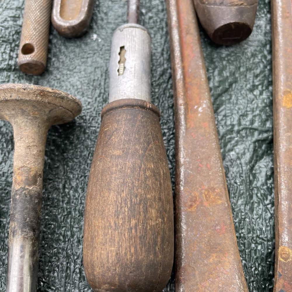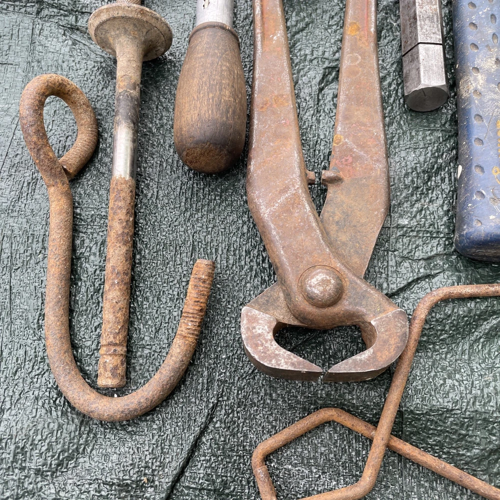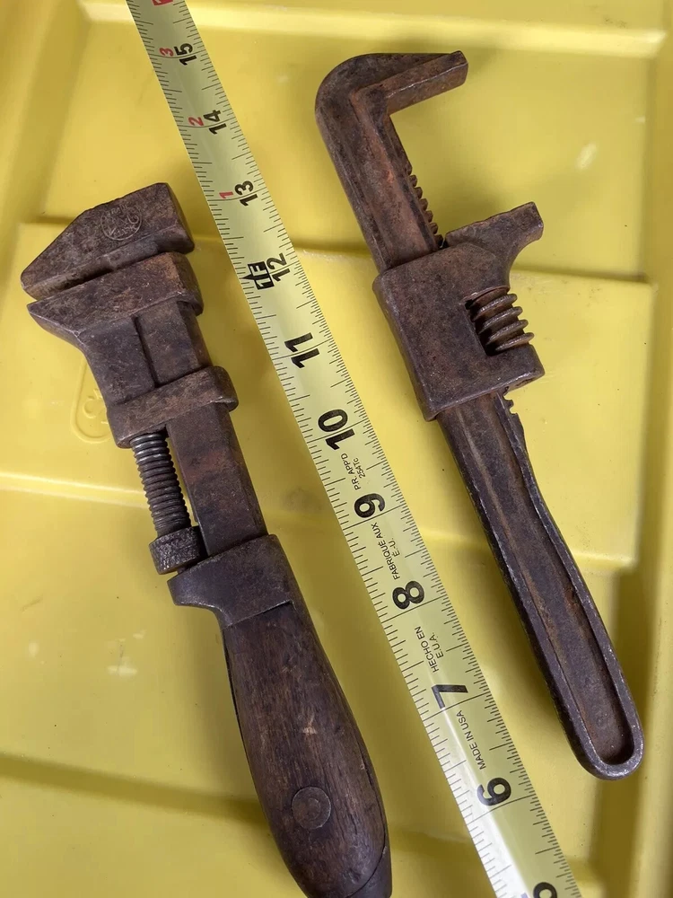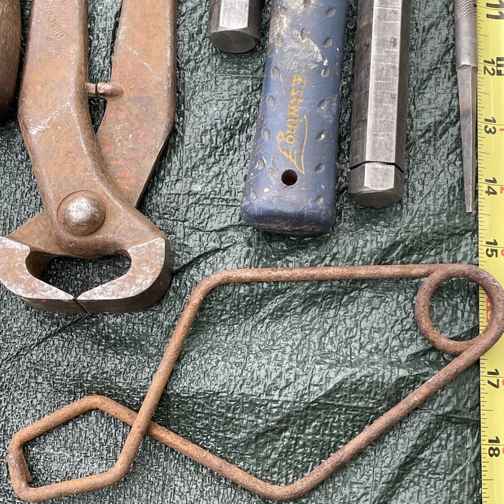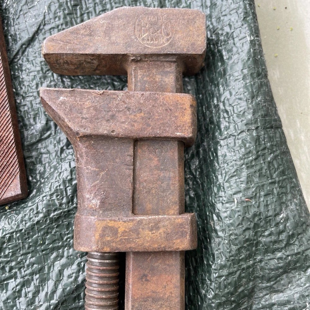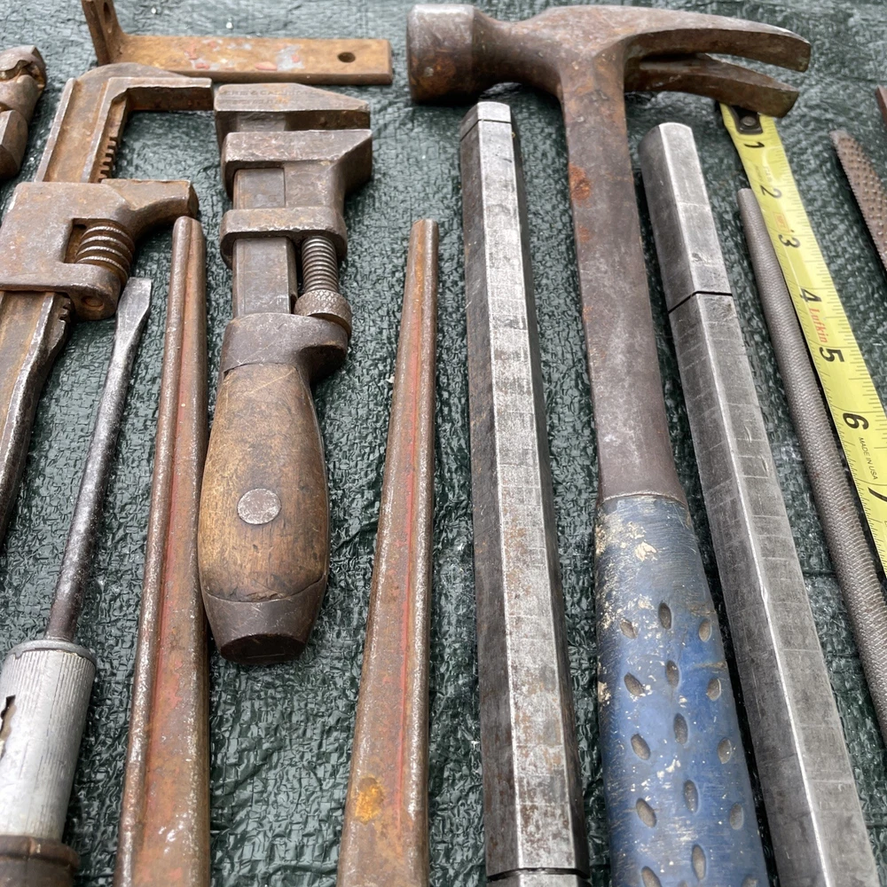 This product is a set of 15 antique 1900s adjustable wrenches, nippers, hammers, rasps, and files, along with a reversible screwdriver. These vintage tools would be a great addition to any collectibles or tools enthusiast's collection. The set includes a variety of tools that were commonly used in mechanics and woodworking during the early 1900s, offering a glimpse into the craftsmanship and techniques of the past. One wrench, Trademark brand, has a wooden handle and looks to be in excellent condition. Great old old blacksmithing tool and cutters nippers. Stamped “Champion Dearment Meadsville PA” 2 files/rasps 1 Vintage 14" Wood Rasp File Round curved Rare 1 Vintage 14” Wood Rasp Steel File Flat