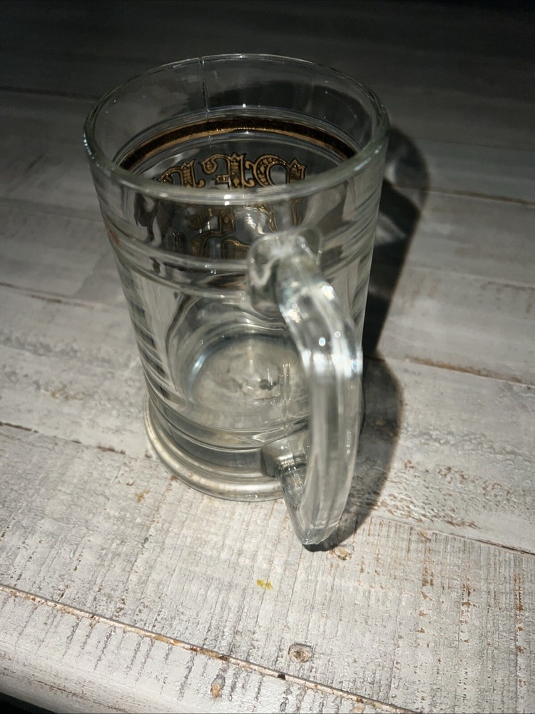 Vintage 16 oz. Clear Glass Gold leaf lettering 5 cent Beer. Very nice condition