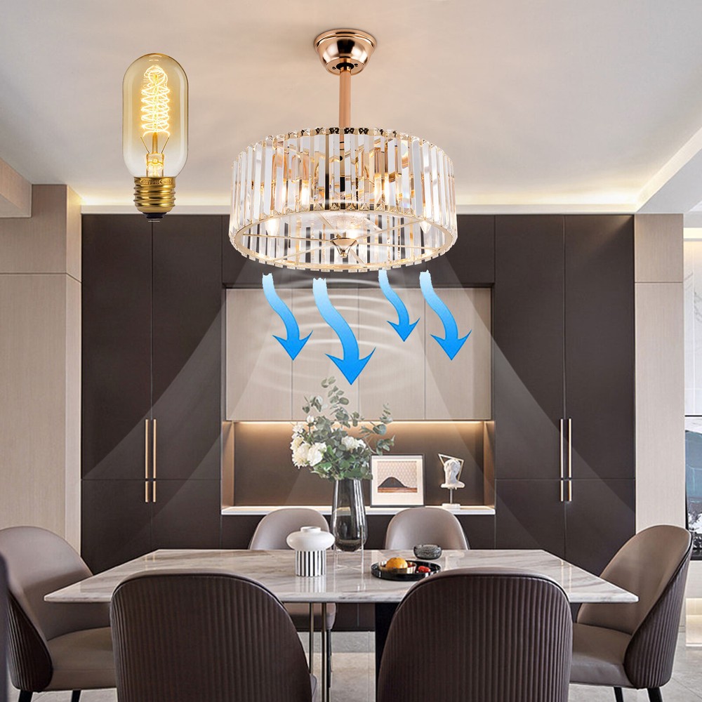Specifications Color: Gold Material: Copper, Tempered Glass, ABS Surface Treatment: Solder Process Style: Retro Motor Type: Pure Copper&Reversible Motor Number of Fan Blades: 7 Mounting Type: Ceiling Mount Rated Voltage: 85-265V Rated Power: 40W Power Source: DC Wind Speed Gears: 6 Timing: 1/2/4h Bulb Size:5*E26/E27 (Not Included) Suitable Area: 10-15㎡/107-161ft² Electric Fan Design: Ceiling Fan Room Type: Bedroom, Living Room, Dining Room, Living Room, Kitchen Controller Type: Frequency Conversion Remote Control Efficiency: E Noise: About 40dB Base Size(L*H): 15*5cm/5.9*1.96inch Lampshade Size(L*H): 45*16.5cm/18*6.5inch Down-rod Length: 12cm/4.8inch, 25cm/9.8inch Product Height: 33.5cm/13.26inch, 46.5cm/18.26inch Package Included 1 * Ceiling Fan Light 1 *English Manual 1* Remote Control 18 Inch Retro Ceiling Fan Light 6 Speeds Tempered Glass Caged Pendant Lamp w/ RC Description This 2-in-1 ceiling fan light allows you to feel the bright light and enjoy the coolness at the same time. It has six gears of wind speeds with a timing function to meet your daily usage needs. It can be integrated with different decoration styles and is ideal to create an excellent life and sleep environment to accompany you in all seasons. Key Features Stylish Exterior: The cylindrical lampshade, retro color scheme (Gold), and delicate lines make it very luxurious, and the strips of tempered glass are like beating piano keys. It can be a good decorative piece to blend in with different decor styles and add color to your room. Great Durability : The lampshade is made of high-quality copper with a s oldering process and tempered glass with high transparency, which is heat-resistant , strong, durable, and not easy to deform. The fan blades are made of ABS, which has high strength, good toughness, and good formability, which can ensure a smooth surface and good gloss. Excellent Performance: The 7 fan blades and pure copper motor can provide strong wind, which can not only improve the air circulation in the room to keep the air fresh but also can be used with air conditioners to balance the indoor temperature. Meanwhile, the reverse function can promote heat circulation in cold winters High Safety: It is enclosed with 7 ABS blades hidden in the cage to avoid an accident caused by getting involved in the blades, so it's much safer than traditional fans to protect your family away from the fan blade's danger. 2-in-1 Function: The ceiling fan light has the function of fanning and lighting. It can not only illuminate you but also reduce heat, which can save you a lot of space. Adjustable Speed & Working Time: It has 6 gears of wind speed and you can choose low speed to enjoy the comfortable breeze or high speed to cool down quickly. Meanwhile, You can control its working hours in advance (1/2/4 hour), which can bring you great convenience. Large Applicable Area: The item can serve an area of 10-15㎡/107-161ft². So you can feel the coolness and illumination over a considerable area. Easy to Clean : The smooth and flat shell, as well as the detachable fan blades, make this product easy to clean. You only need to clean it with a dry cloth, saving you lots of time and effort. Guaranteed Customer Service: We aim to provide quality products and services. If you have problems, please feel free to contact us. We will reply and solve the problem for you as soon as possible. Details Remote Control: It allows you to remotely control the timing, wind speed, etc, saving you lots of effort. Down Rods: This product is equipped with two down-rods with different lengths for different ceiling heights. Pure Copper Motor: It has stable performance, low-temperature rise, and low noise(About 40dB), providing a quiet working and sleeping environment. Meanwhile, there are a lot of heat dissipation holes on the motor shell, which can provide a good heat dissipation effect to ensure the stable operation and long service life of the motor. Application It is suitable for the living room, dining room, kitchen, study bedroom, small bedroom, conference room, and other places of 10-15㎡/107-161ft². Welcome to the yokimm ! We are committed to providing customers with better and more favorable products ! If you have any questions, please feel free to contact us ! Thank you for your support! Payment Delivery details Terms of sales About us Contact us Payment We accept ebay payment 。 Fees such as import duties, taxes are not included in the item price or shipping costs. These charges are the buyer's responsibility. Delivery details Shipping: 2-9 working days to: USA Terms of sales We maintain high standards of excellence and strive for hundred percent customer satisfaction. Feedback is very important to us. We hope that you contact us immediately before you give neutral or negative feedback, so that we can address your concerns. It is impossible to address issues if we do not know about them! About us Your satis faction is our ultimate goal. We work hard to earn your trust and future business. Our certified technicians have tested each item before shipping. The unit comes with 1 year limited warranty on all manufacturing defects. a) If you receive a defective item, you may return it or ask for a discount. Please contact us within 14 days after you receive the package. b) What you returned must be intact and in its original packaging as re? u. Customer is responsible for shipping costs of the returned item. c) We will cover the cost of shipping back t with the shipping rate indicated in the registration page. We will send you a new unit or refund the full payment you paid. Thank you. Contact us Business Hour Business Hour: Monday To Friday: 8:30 AM to 5:00 PM (Beijing China time) Due to time zones, our reply to your questions may not be immediately. But within above working time, we will reply your email within 24 hours. If it's non-workdays, please kindly be patient and wait till Monday. Please contact us with ebay message. Please feel free to co