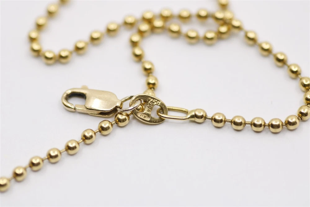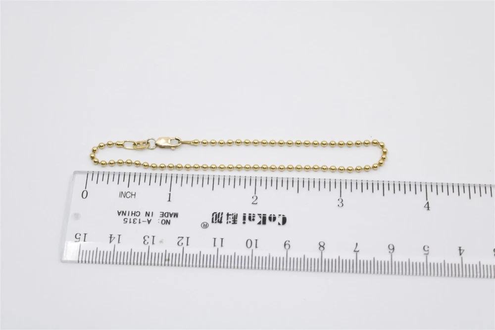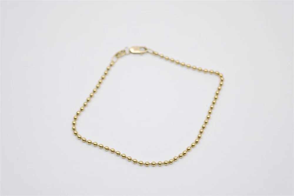Vintage 18K Yellow Gold 7.5” Beaded Bracelet. This 7.5 inch yellow gold bracelet features a high polish, beaded link design with a width of 1.9mm. **The original lobster clasp has been replaced with a 10K yellow gold lobster clasp.** The lobster clasp has a "10K" hallmark. There is a “750” hallmark on the clasp tab. This beaded link bracelet has a total weight of 3.1 grams. RD02155 Item As Is. All stones not identified unless clarified above. All items are pre-owned and pre-loved. Stones may show minor nicks and abrasions or small signs of wear. Diamonds are graded using GIA standards by GIA Graduates. Diamond and gemstone weight is estimated by formula. The metal is stamped or identified by acid testing and/or XRF alloy analyzer gun. All items shipped USPS First Class, Signature Required Items over $1000 ship overnight, Signature Required Please message with any questions. We are available Monday through Saturday 10am to 6pm. Powered by SixBit's eCommerce Solution