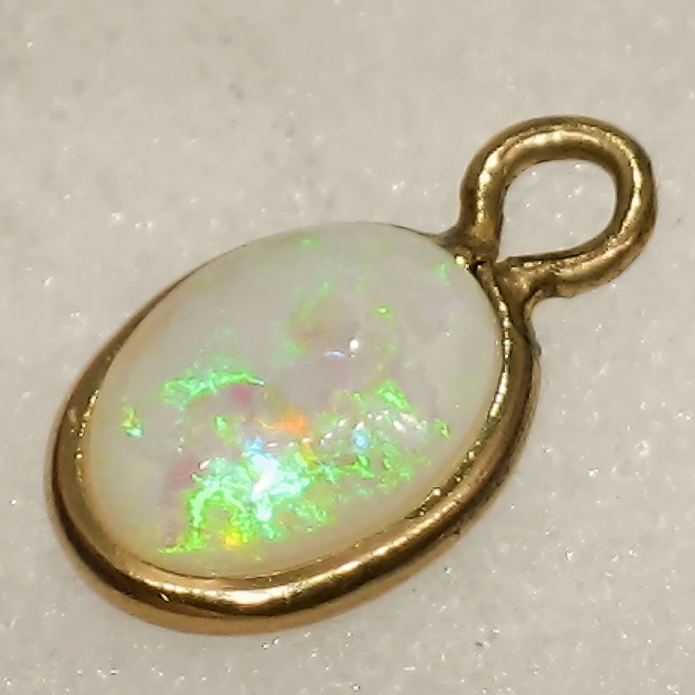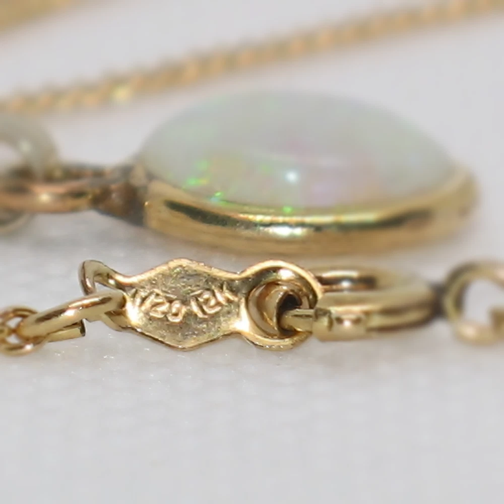 Features: • Vintage piece, 1950s, slight wear on pendant bezel but opal is pristine • Solid white opal wrapped in 18K Gold • 12K Gold Filled chain • 15-inch curb link chain Details: • Metal: 18K Yellow Gold pendant, 12K GF chain • Gemstone: White Opal Purchase Includes: • White Opal Necklace • Gift Box For Buyers: • To prevent shipping delays, please provide a complete and accurate address. • Photos are taken at close range to achieve a high-quality, clear vision of the products. Transparency with buyers is a top priority. • If you have any inquiries, please feel free to reach out, you will receive a response as soon as possible. This seller is committed to Customer Service! Thank you and happy shopping!
