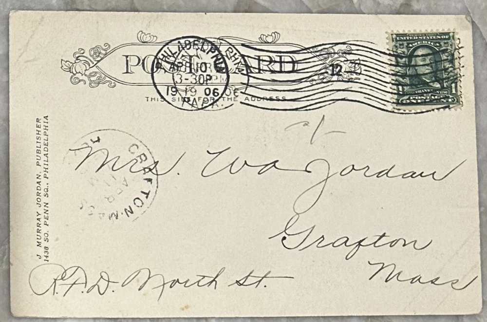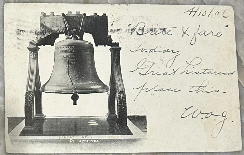 Vintage 1906 Historical Philadelphia PA Postcard The Liberty Bell Mailed Apr 3, 1906 Has a canceled Ben Franklin 1 Cent Stamp Condition is very good overall and has been posted Measures 5 1/2" x 3 1/2"