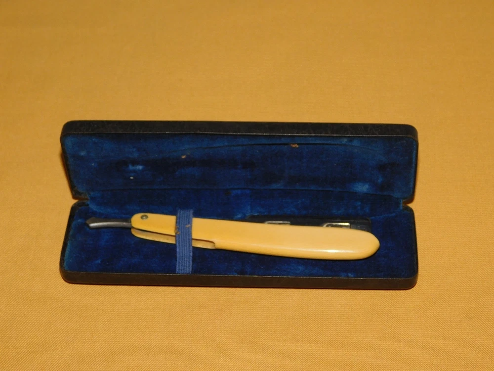 YOU ARE BIDDING ON.... . VINTAGE 1907 URHAM STRAIGHT RAZOR IN ORIGINAL BOX .. . ..SHOW USAGE/AGE WEAR/AGE DISCOLORATION.....P LEASE VIEW PHOTOS FOR CONDITION.***PLEASE E-MAIL IF YOU HAVE A QUESTION OR WANT AN ADDITIONAL PICTURE....PLEASE VISIT MY EBAY STORE FOR ADDITIONAL VINTAGE ITEMS..THANK YOU***RD 9Q-BX1111-xxxx