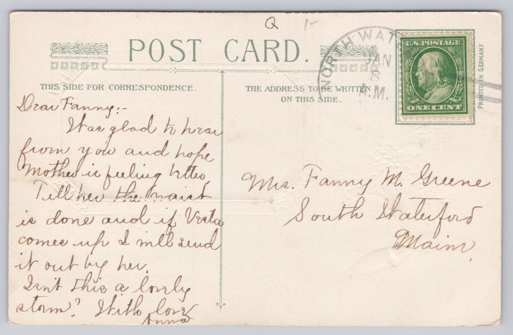 Christmas and/or New Years Greetings with Bell, Holly, Still Life Art. Posted 1910, divided back postcard, Winsch back. Please view scans for condition.