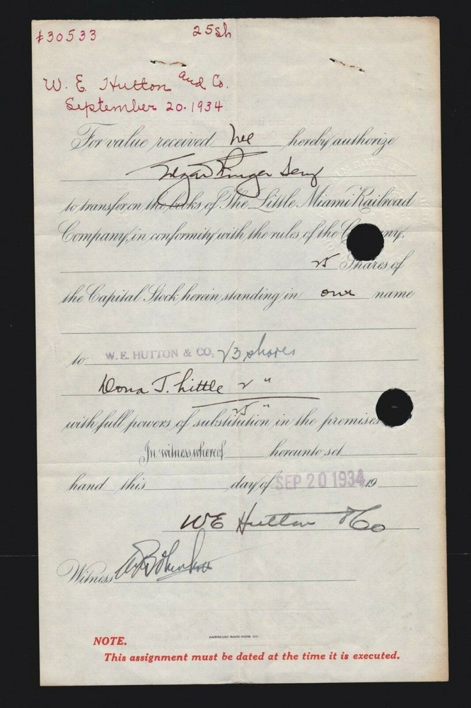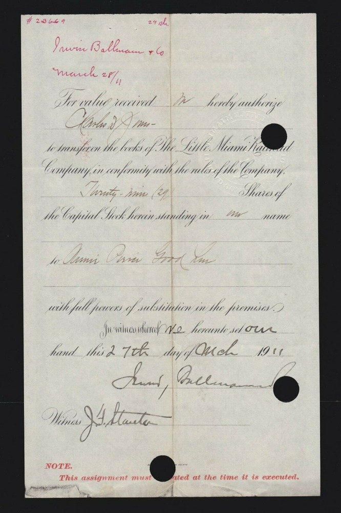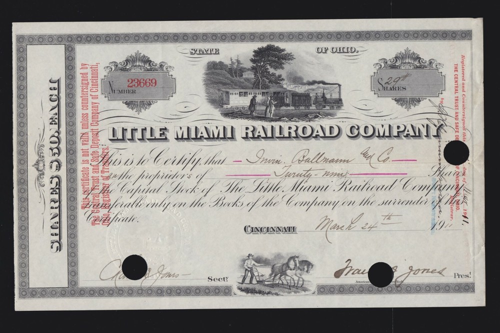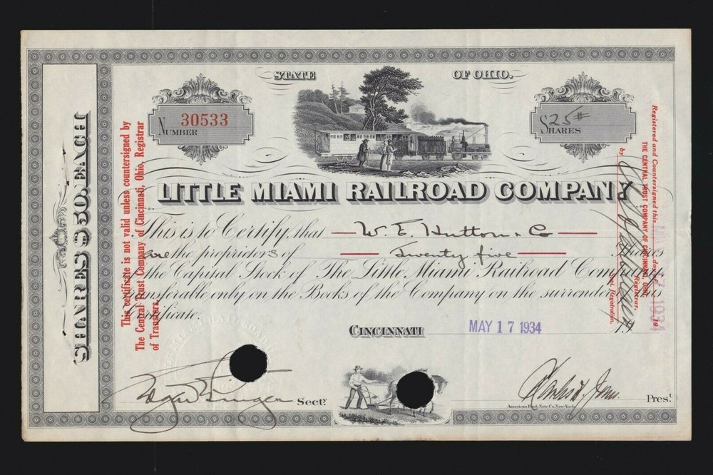Vintage 1911 & 1934 Little Miami Railroad Co Stock Certificate US Collectible