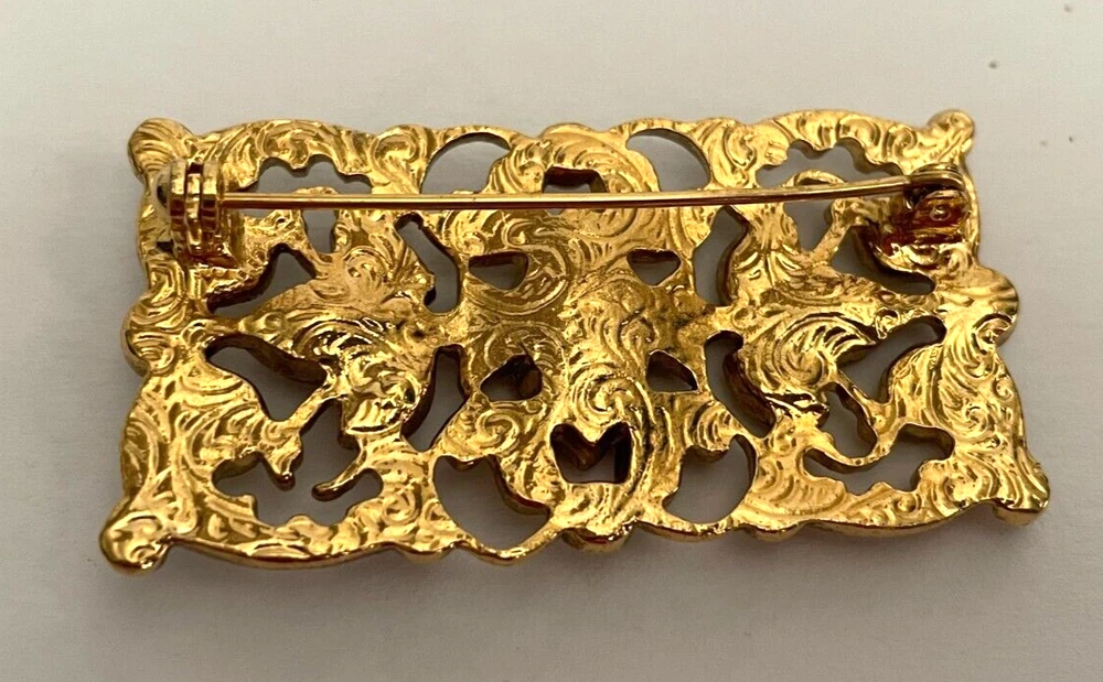 Vintage 1928 Brand Red & Clear Jeweled Brooch Lapel Pin Gold-tone 2" Jewelry #83 This is a charming vintage 1928 brand brooch. It measures 2" wide x 1" long. It is gold-tone and has red and clear rhinestones on it. This would look gorgeous for any occasion! This is a timeless and classic piece! Add it to your collection today! Please look at all photos and ask all questions before purchasing. Check back regularly as we list new items daily. Thanks for Stopping by today!