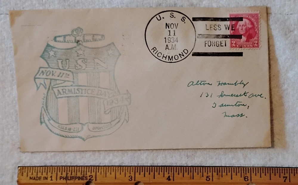 Vintage 1932 Washington Red 2 Cent Bicentennial Stamp Precanceled 1934 Envelope U.S.S Richmond Found in a collection, keep an eye on my shop for more unique items. Will Combine shipping on multiple items purchased, Please wait for updated invoice. -Orders over $20.00 will get USPS Ground Shipping + Tracking -Orders under $20.00 will get eBay Standard Envelope + Tracking