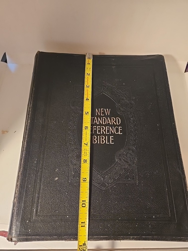 This vintage 1936 Blue Ribbon New Standard Reference Bible-Hertel Giant Coffee Table is a luxurious collector's edition illustrated by various authors. Its leather binding makes it a durable and stylish addition to any library. The Bible has been printed in its original form and is a valuable addition to any collection. The publisher, John A. Hertel Co., has done an excellent job of presenting this Bible in a beautiful and elegant manner. With its special attributes, this Bible is perfect for those who want to delve into Christianity and spirituality. It is an excellent choice for anyone who wants to add a touch of vintage charm to their collection. The Bible is in good condition for age, general wear. On the cover there are tiny white spots. Maybe paint and it can be cleaned but I did not do this. Would rather the buyer so I do not damage. Beautiful book and good condition for age. Very Large. Leather bound. Gold brushed pages.