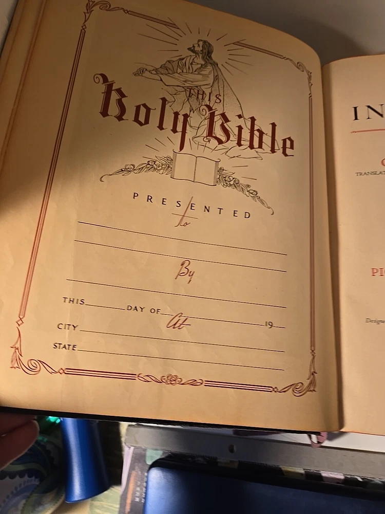 This stunning vintage Bible is a true treasure—luxurious leather binding, timeless illustrations, and impeccable craftsmanship make it a standout piece. Perfect for collectors or anyone who appreciates classic elegance, it’s both a beautiful display item and a meaningful keepsake. The attention to detail and historical authenticity make it a must-have for any library or coffee table.
