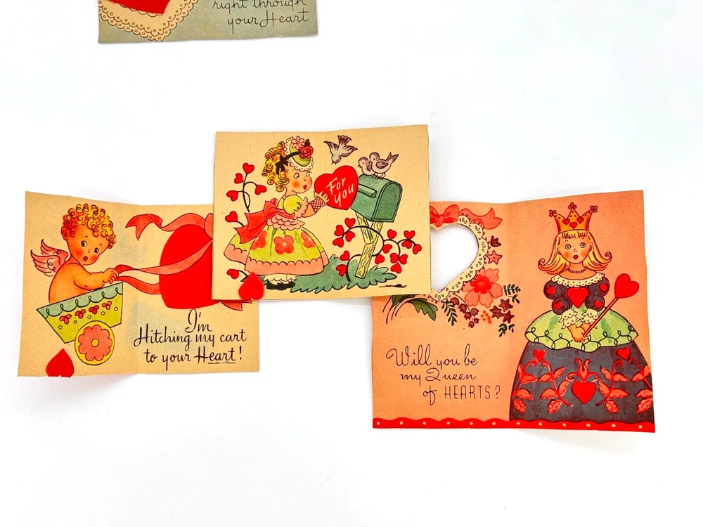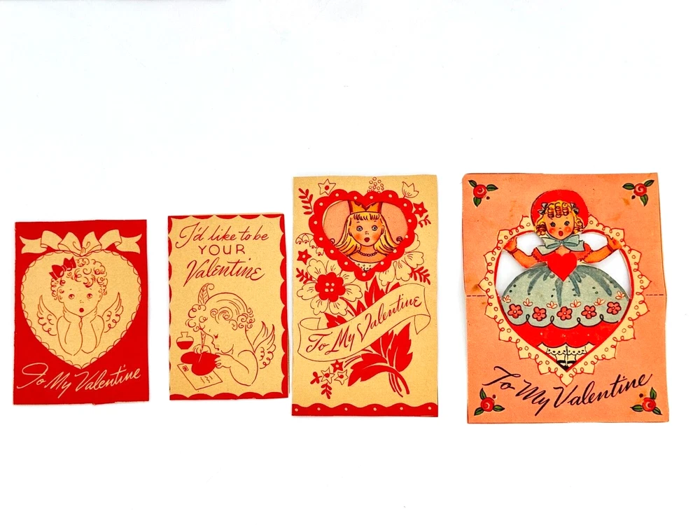 Vintage 1940s & 1950s Valentines Cards - Used Lot of 11 For Crafting, Scrapbooking, and/or Collecting Range of height is 3.75"-5"T Thank you for supporting my business! Note about all used/vintage items: They are sold in used, pre-owned condition. Used, vintage, and antique items by nature have some wear, imperfections and signs of use, age and time. Please examine the photos carefully. I pack your items like I expect them to be drop kicked aka with loads of TLC I am a zero waste shipper. Most packing materials are sourced from my local community. Packing peanuts will always be compostable. If you need an invoice printed please let me know and I will gladly provide it. GL2