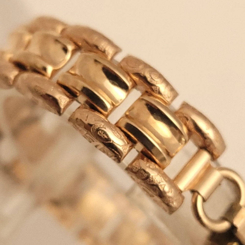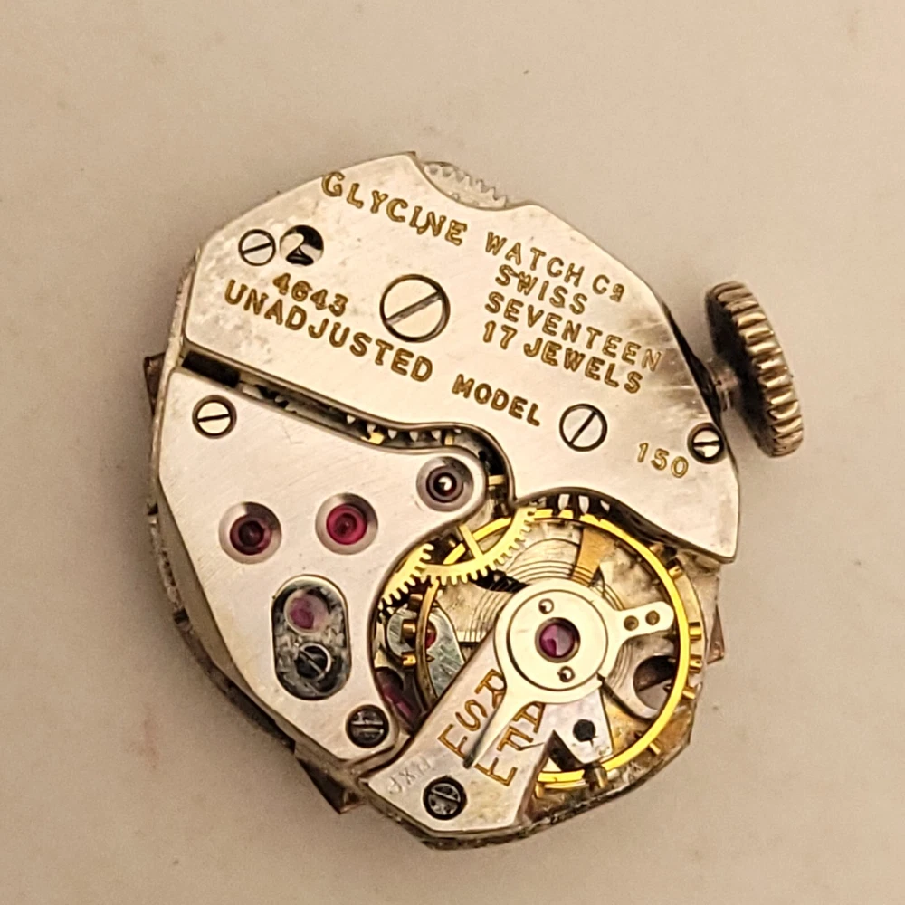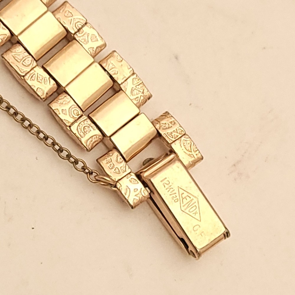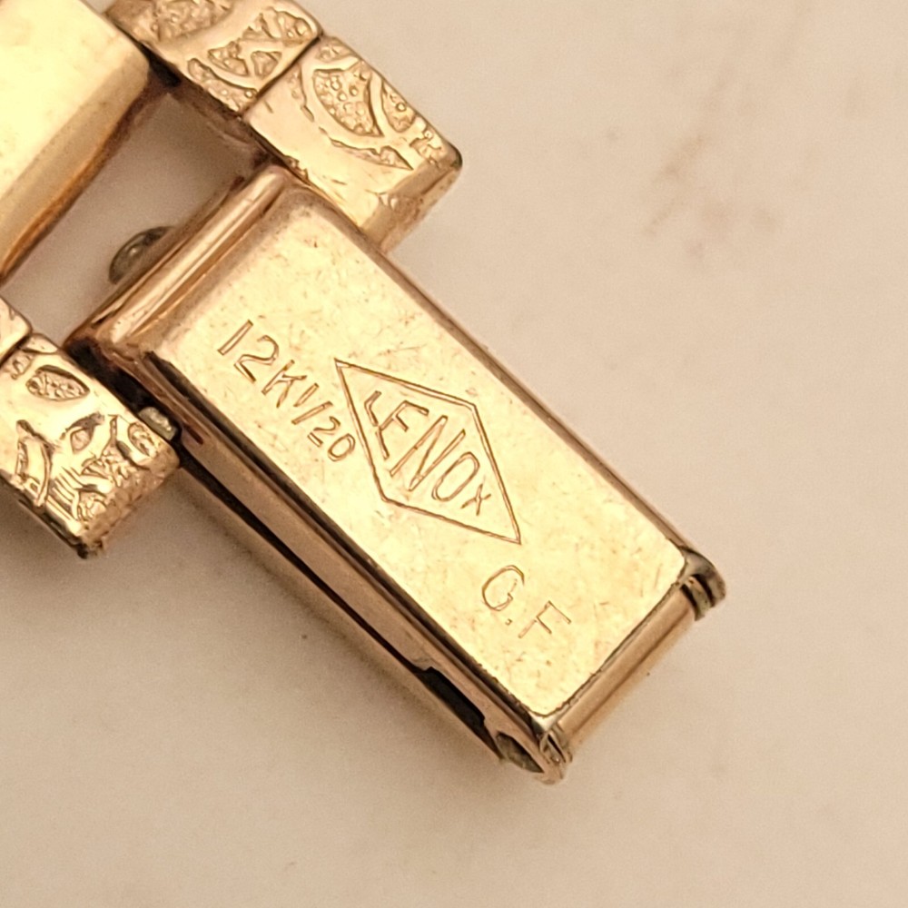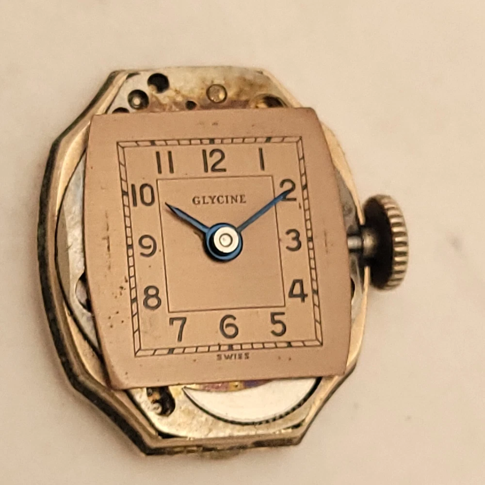 THIS IS A STUNNING 1940S HIGH GRADE SWISS LADIES COCKTAIL WATCH WITH A GORGEOUS MATCHING FACTORY ENGRAVED 1/10 12K GOLD BAND. A BEAUTY ON THE WRIST! THIS HIGH QUALITY SWISS BEAUTY IS RUNNING STRONG AND ACCURATE, WINDING SMOOTHLY AND SETTING PROPERLY, KEEPING FINE TIME. YOU'RE GOING TO LOVE TO STRAP ON THE GORGEOUS MATCHING ROSE GOLD BRACELET THAT IS FACTORY ENGRAVED. IT REFLECTS THE LIGHT WITH EVERY TWIST AND TURN OF YOUR WRIST. THIS IS A HIGH QUALITY BRACELET MADE OF 1/10 SOLID 12 KARAT GOLD. SHE WILL FIT A 6 INCH WRIST COMFORTABLY. THE DIAL IS ROSE GOLD COLOR DISPLAYING A TWO-TONE EFFECT WHEN ANGLE FROM SIDE TO SIDE. I HAD A DIFFICULT TIME GETTING A GOOD PICTURE OF THE DIAL, WHICH IS TRULY BEAUTIFUL. HER BOLD BLACK HANDS ACCURATELY DISPLAY THE PASSING TIME TO THE ARABIC BLACK HOUR NUMERALS WHICH ARE FRAMED BY A FULL TRACK OF MINUTE MARKERS. POWERING THE HANDS IS A HIGH-GRADE SWISS MADE GLYCINE 17 RED RUBY JEWELED MOVEMENT. EACH OF THE RED RUBY JEWELS ACT AS BEARINGS TO REDUCE FRICTION IMPROVING ACCURACY AND ENSURING LONGEVITY. HER MOVEMENT IS CLEAN, RUNNING STRONG AND ACCURATE. Somebody is going to be very pleased when they place the winning bid. _____________________________________ Take a few minutes and read some of the tens of thousands of positive feedback that we have received from our users here at Decowatches and our sister site Decowatchesparts and you will understand why buying a watch from us is an enjoyable and safe experience! Our shipping fee ensures that this watch is carefully packaged, has door to door tracking and comes with a three-month service warranty for your added piece of mind satisfaction and convenience! We are pleased to say that we are now shipping twice a week, either Wednesday or Thursday and Saturdays. Good luck to you all! If you enjoy collecting vintage watches as much as I do, after you place your winning bid, click on save seller next to our username. Then you can easily check back often as I will be listing a few magnificent vintage mens watches this week and every week. This week we will have a bunch of magnificent and rare watches listed.