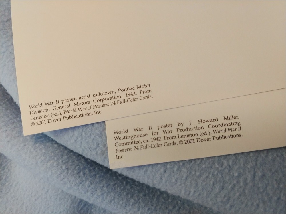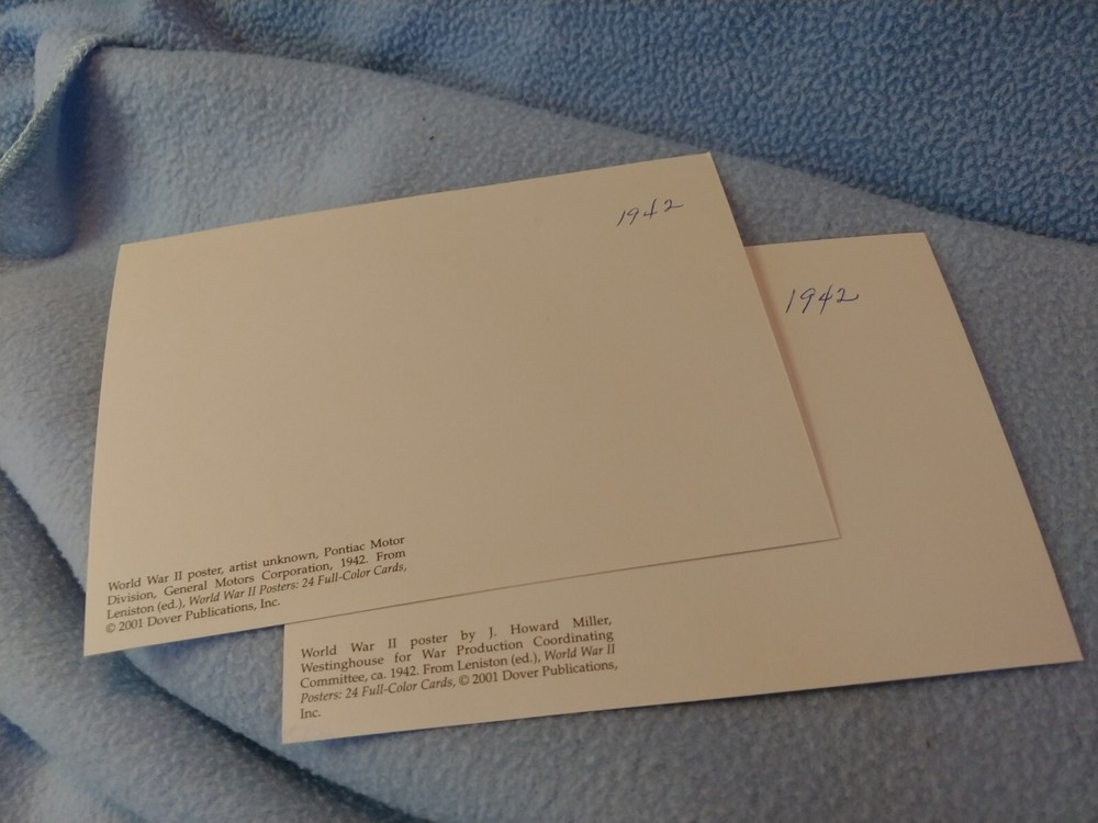 These are 2001 reproductions of wartime cards in very good condition. Size isn't exact. Very suitable for framing You will receive the exact 2 post cards shown in the photos. They will be shipped in a protective plastic sleeve in a 6"×9" envelope. Look closely at all of the photos for the best description and feel free to ask questions. I pack carefully and ship promptly with tracking. I offer combined shipping. A refund after the sale is really the best way to get the lowest shipping cost. Be sure to check out my other cards and postcards in my shop category "Postcards & Cards". I also have many other interesting items in my store. Thanks for looking!