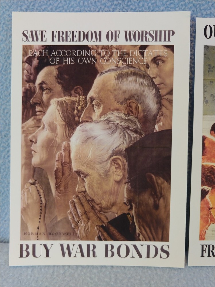 Vintage 1943 WWII Norman Rockwell Postcard Reproductions 6” x 4-1/4”