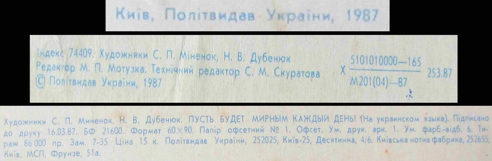 Original slogan on the poster: ХАЙ БУДЕ МИРНИЙ КОЖЕН ДЕНЬ! 9.V.45 Literally English translation of the main: LET IT BE EVERY DAY PEACEFUL! 9.V.1945 POSTER ARTIST: MINENOK S.P. PRINT YEAR: 1987 SUBJECT: PEACE LANGUAGE: RUSSIAN PRINT RUN: 86.000 PUBLISHED BY: "POLITIZDAT UKRAINY", KIEV SIZE: IN: 24 x 36 ¼ = CM: 61 x 92 CONDITION: FLAT, GOOD Description & Historical Background — — — — — — — — — — — — — — — — — — — — — — — — — — This vibrant Soviet poster was created in 1985 by Ukrainian artist Minenok S.P. to commemorate Victory Day on May 9, 1945 —the end of World War II in Europe. The central element of the design features a blossoming white flower and a radiant rainbow emerging from it, symbolizing hope, peace, and renewal in the wake of wartime devastation. The bold red inscription 9.V.45 refers to May 9th, 1945, the day Nazi Germany capitulated to the Soviet Union. The poster was issued in the Ukrainian SSR and reflects both local cultural aesthetics and a broader Soviet message of peace and remembrance. It is part of a period in the mid-1980s when Soviet poster design became more poetic and symbolic, emphasizing emotional resonance over ideological slogans. ✯ Style — — — — — — — — — — — — — — — — — — — — — — — — — — This poster exemplifies lyrical socialist realism , with soft airbrushed gradients and harmonious composition. The natural imagery—blossoms, rainbow, and sky—express a hopeful postwar vision. Designed to evoke emotional optimism, it reflects a shift in 1980s Soviet graphic design toward more peaceful and symbolic themes, especially in commemorative works. ✯ Artist — — — — — — — — — — — — — — — — — — — — — — — — — — Minenok S.P. Biographical details on S.P. Minenok remain scarce, but he was an active artist in the Ukrainian Soviet Socialist Republic during the 1980s. His work often appeared on celebratory and environmental posters, marked by gentle color palettes and themes of peace, beauty, and social unity. ✯ Condition — — — — — — — — — — — — — — — — — — — — — — — — — — Very good vintage condition. Some minor creasing and light edge wear consistent with age. Colors remain strong and well-preserved. Please review the provided photos for exact condition details.