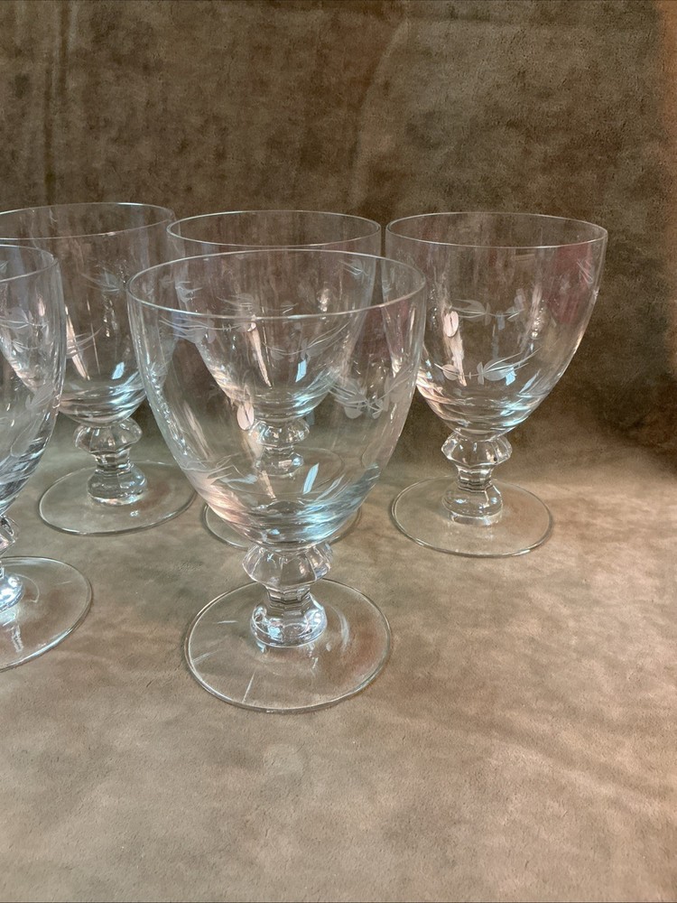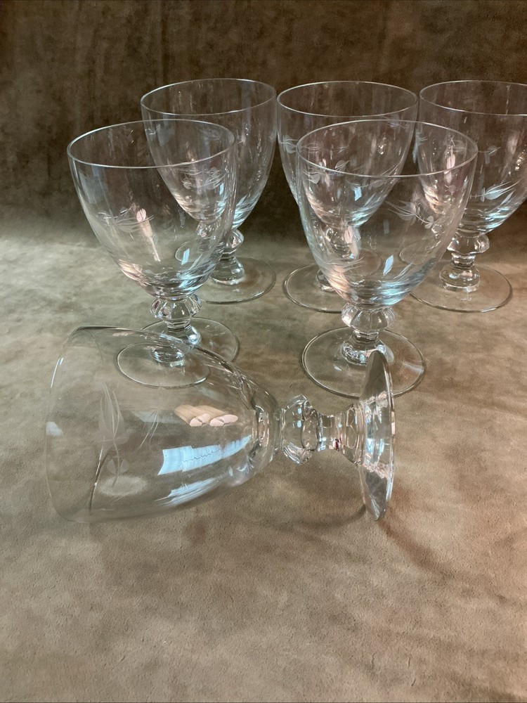 These date to 1954 and are the cut rosebud pattern by Heisey, each of these ice tea stems measures 3-1/2” X 5” and all six are in good condition