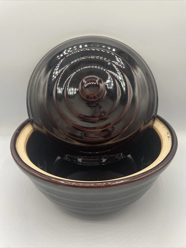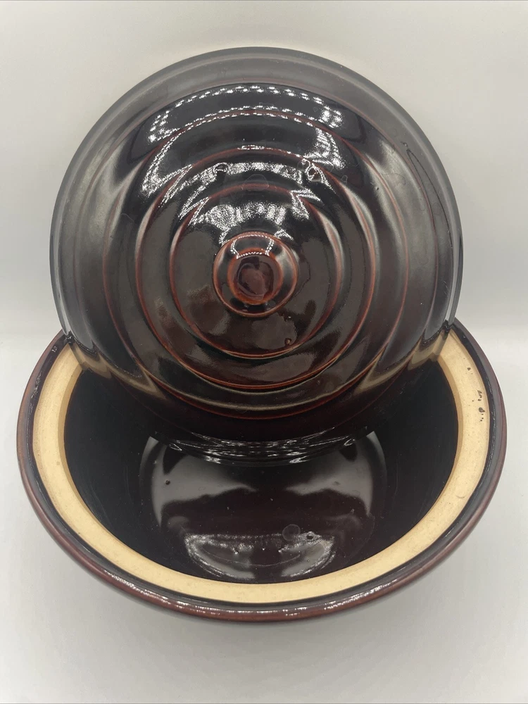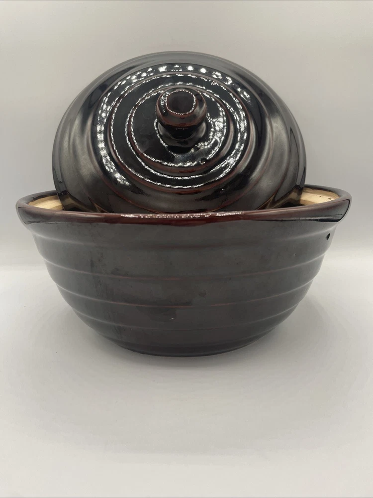 Vintage 1950’s Marcrest Oven Proof Stoneware 8.5" Bean Pot Dutch Oven Brown