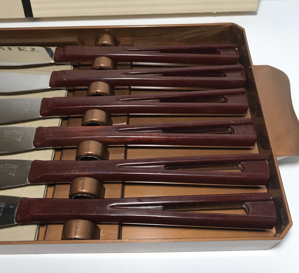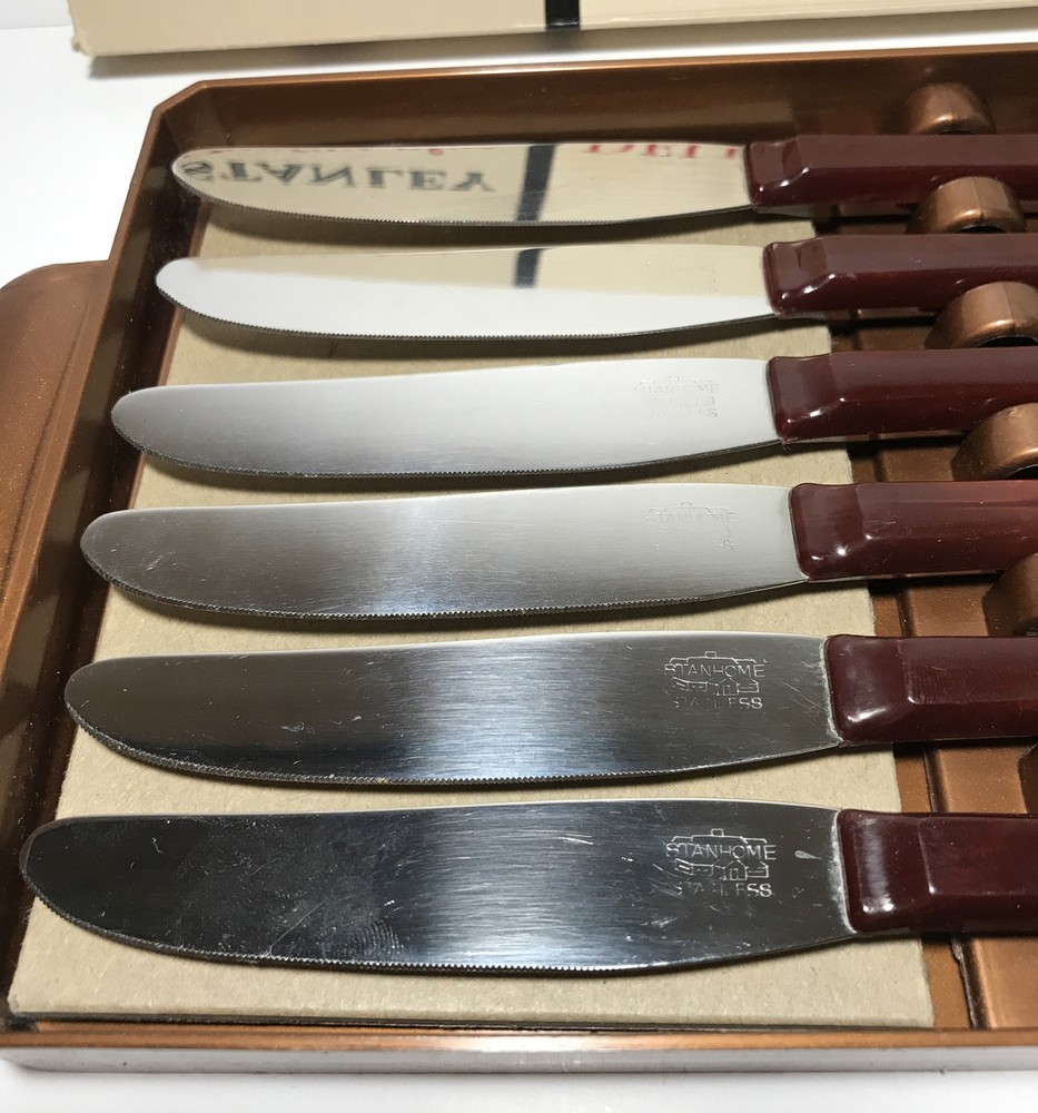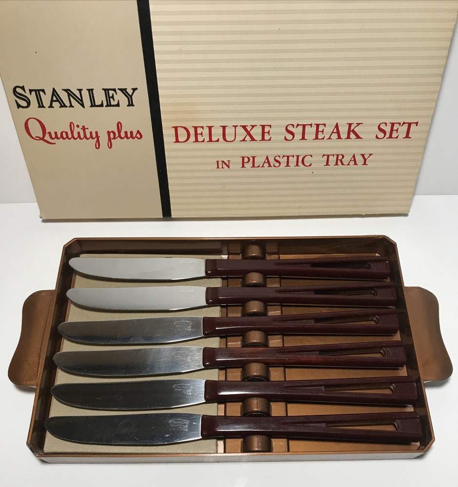 Vintage 1950s Stanley Steak Knives Stan Home Set of 6 & Plastic Tray 448 USA. The knives are in good condition. Please feel free to ask any questions. The set will ship out safely and securely the same or next business day.