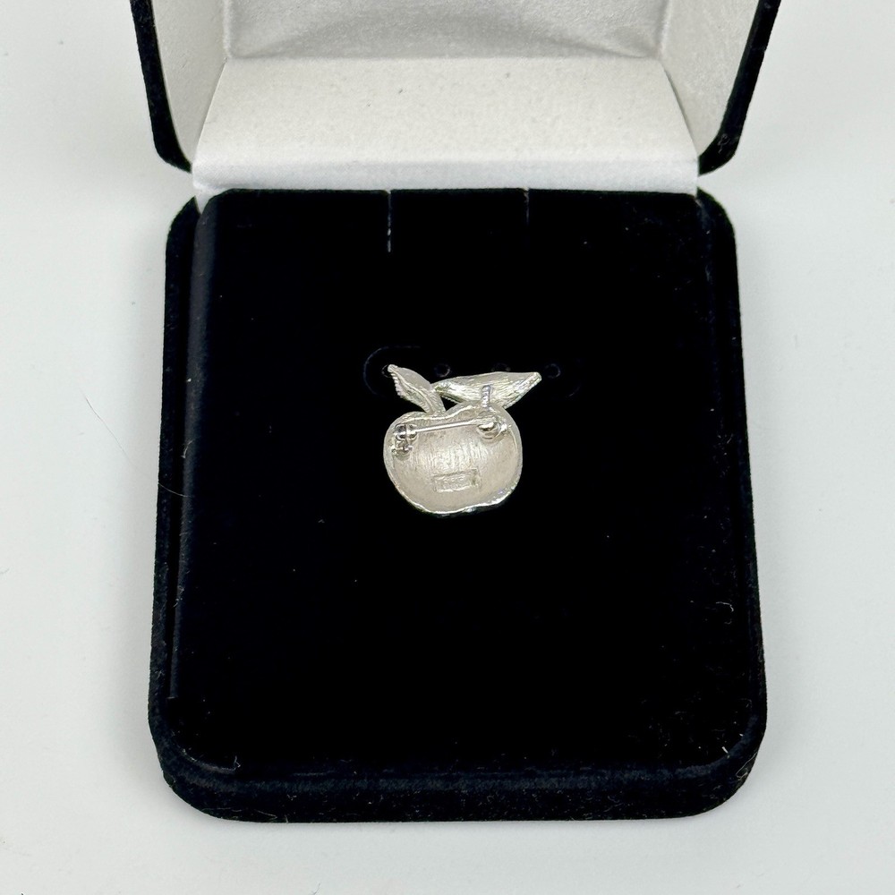 Vintage 1950s Trifari Crown Apple Brooch Silver Tone Textured Lapel Pin 1 Inch