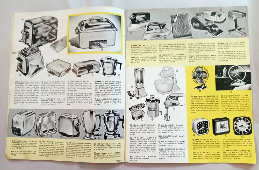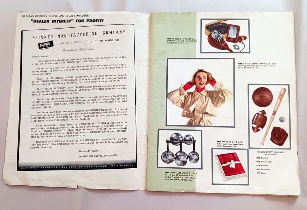 Color and Black and white photos (see sample pages in photos). Lots of bends and a few small tears at edges, age tanned and name on back cover marks on coupon list and throughout.