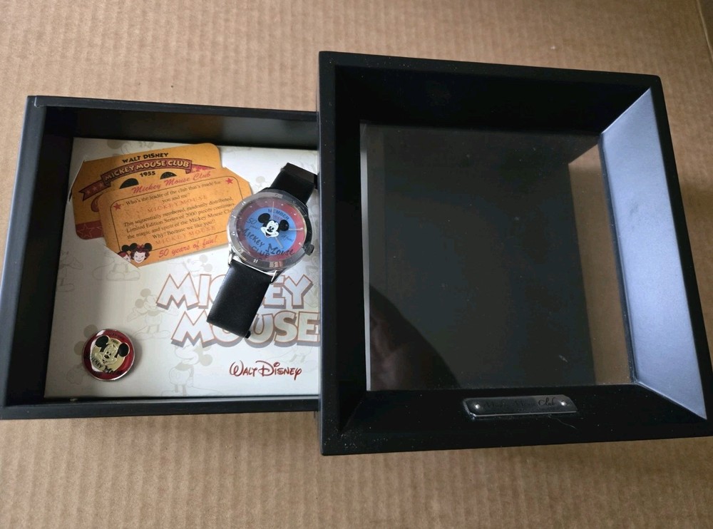 This collectible watch celebrates 50 years of fun at Walt Disney World and features the iconic Mickey Mouse. The watch is a member exclusive from the Mickey Mouse Club and comes with a pin box for added flair. Made in China in 2005, this watch is a must-have for any Disney enthusiast. The brand, Disney, and the characters, Mickey Mouse, are both important aspects of this collectible. The watch falls under the category of Contemporary Disneyana and is a perfect addition to any collection.