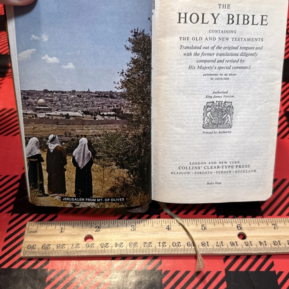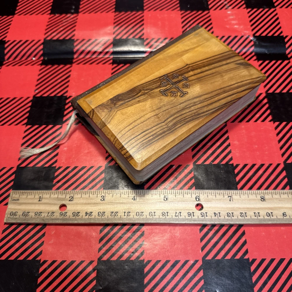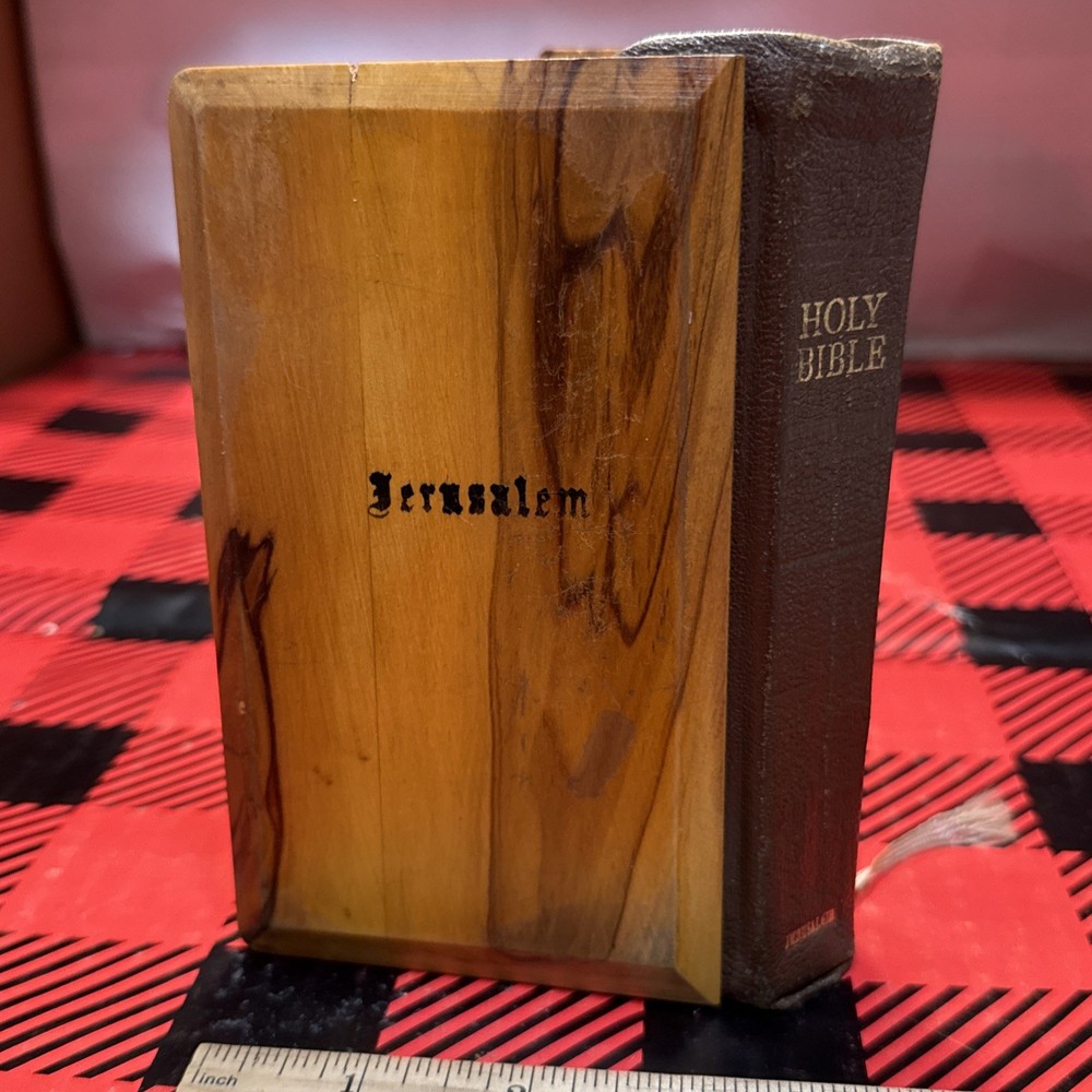 The Vintage 1958 Jerusalem Pocket Bible features a compact pocket size with a beautiful olive wood cover, making it an ideal companion for young adults and adults interested in religious and spiritual topics. This King James Version Bible, published by British Library Publishing, contains the New Testament and is a classic piece of nonfiction historical narrative. With its compact format and unique features, this Bible is a timeless piece that captures the essence of biblical scripture from the 1950s era. See pics for wear