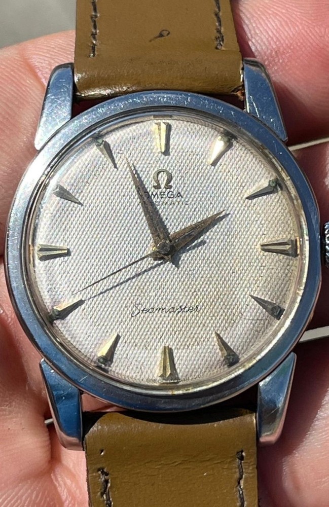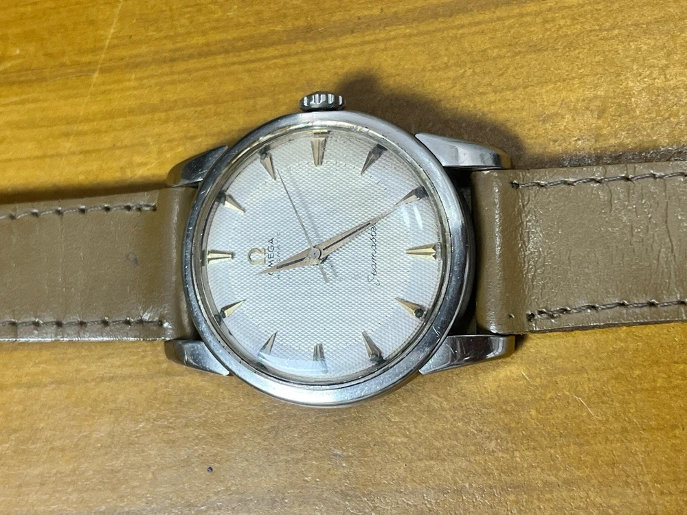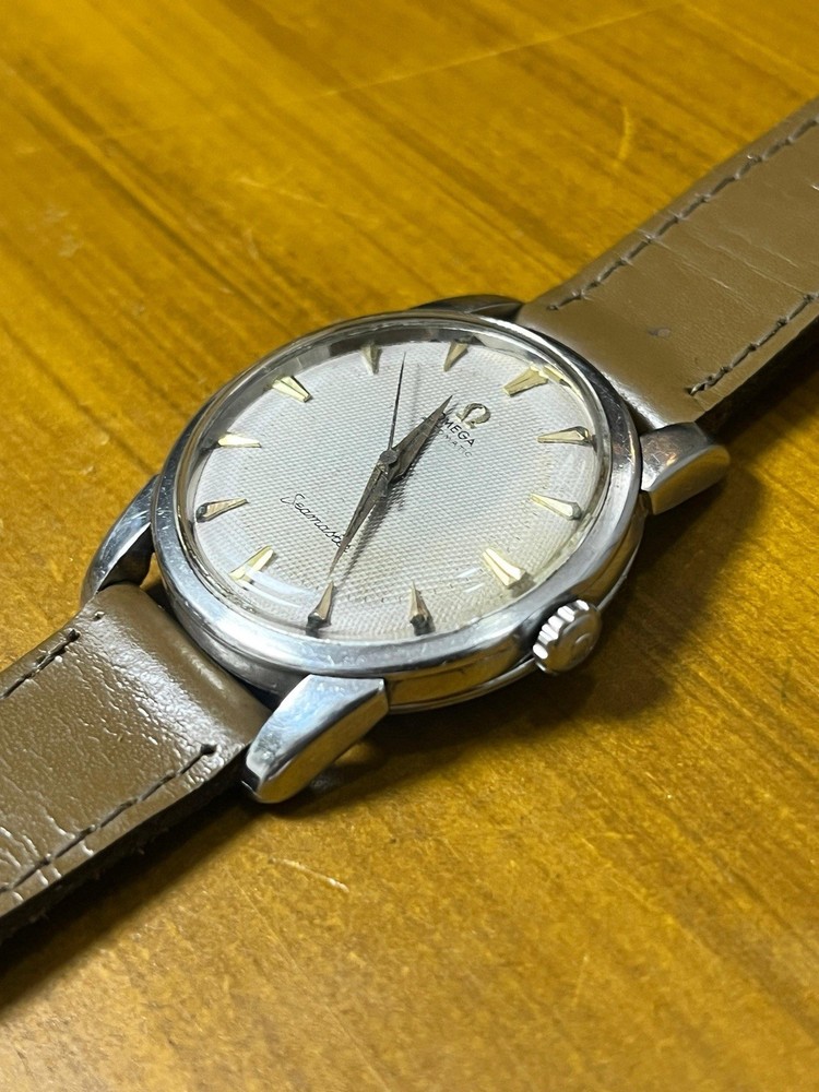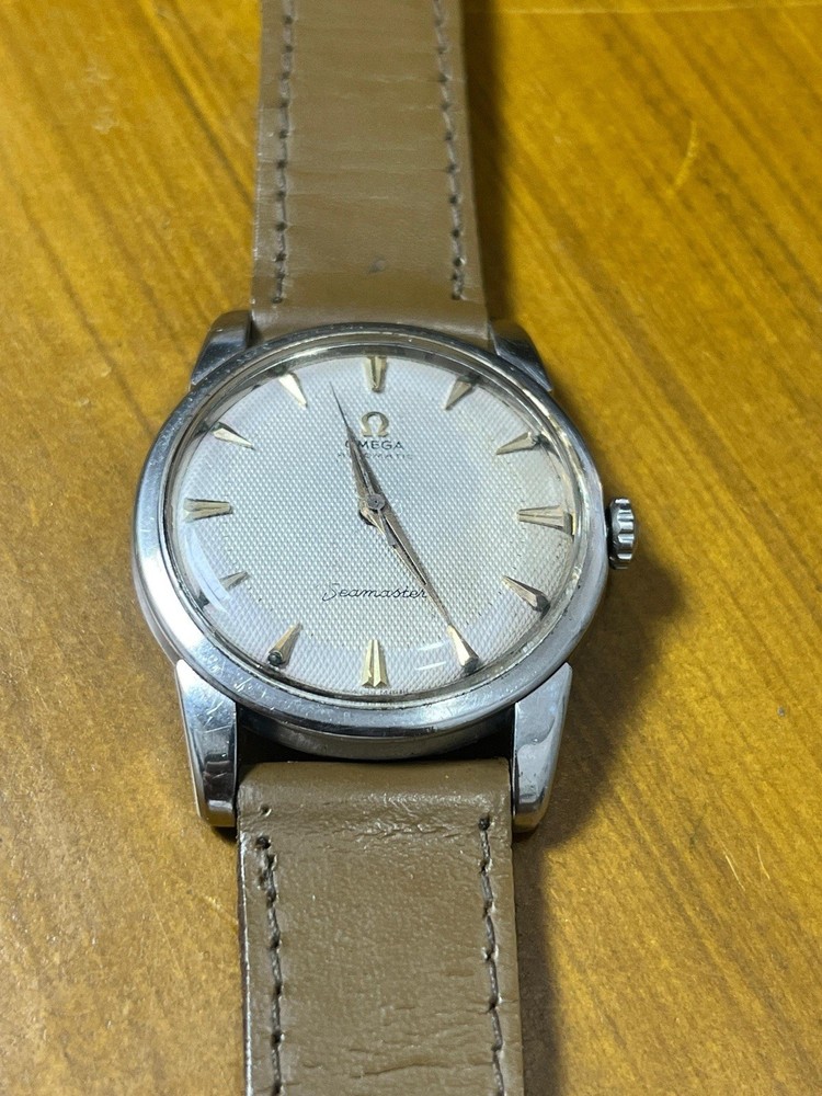 Omega Seamaster reference 2846-13sc caliber 501 automatic, circa 1959. The stainless steel case shows wear and scratches due to age, as seen in the image. Although it is in good condition, it measures 34mm with an 18mm strap. The dial has some stains or dirt, but has never been retouched. It is in original condition, as seen in the images. It has its original crown with a vintage Omega symbol. The replacement plastic case has some scratches. The stainless steel case back shows signs of wear and scratches. The watch is not polished. The movement is in working order. No current service is known. The hands have some unpolished marks and the brown leather strap is not waterproof. "Not water resistant." Vintage watches may be in working order at the time of listing; we do not guarantee their accuracy. They may need servicing at some point. Sold as seen. The shipping price is due to shipping exclusively via DHL. Shipping is done exclusively via DHL within 5 business days after payment. It takes 15 to 30 days to reach its destination. The buyer pays customs fees. Packages may be inspected at customs and incur taxes. Returns are accepted within 30 days; the buyer covers return shipping costs.