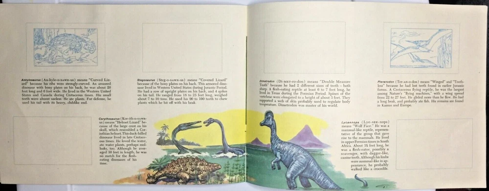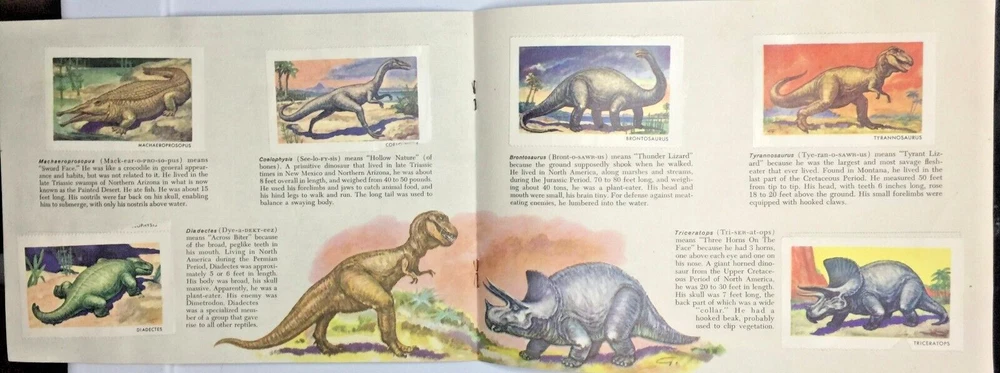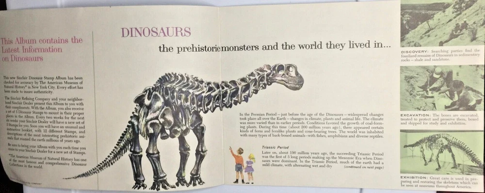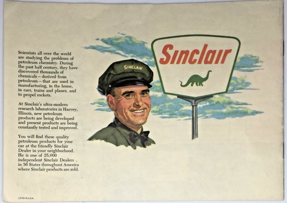 This vintage 1959 Sinclair Oil Co Dinosaur Stamp Album is a must-have for collectors of gas and oil memorabilia. The album features a colorful collection of dinosaur stamps that were originally created to promote Sinclair Oil products. The book is an original piece and was manufactured in the United States, making it a rare find for collectors. The album is perfect for anyone who is interested in the history of gas and oil advertising and wants to add a unique piece to their collection. It is a great conversation starter and will surely impress anyone who sees it. Don't miss out on the opportunity to own this piece of history.