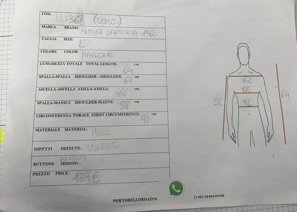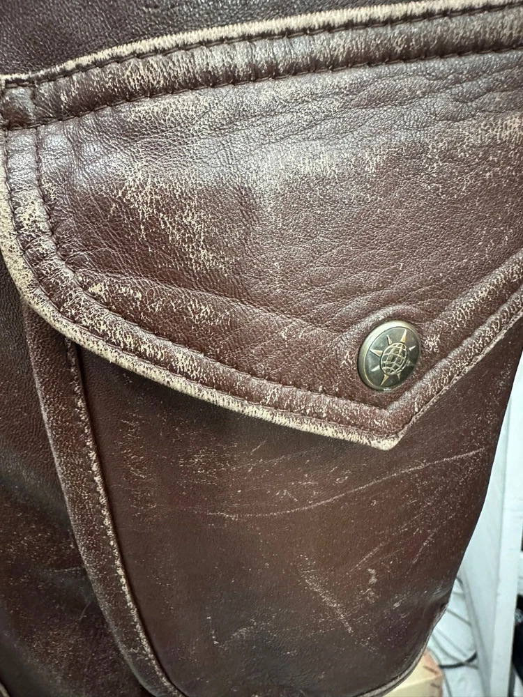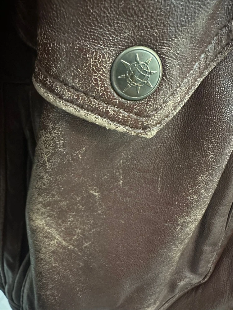 Antica Sartoria 1960 Leather jacket Used Men's size Brown LLV368 Worn Missing Buttons Antica Sartoria 1960 Leather jacket Used Men's size Brown LLV368 Worn Missing Buttons
