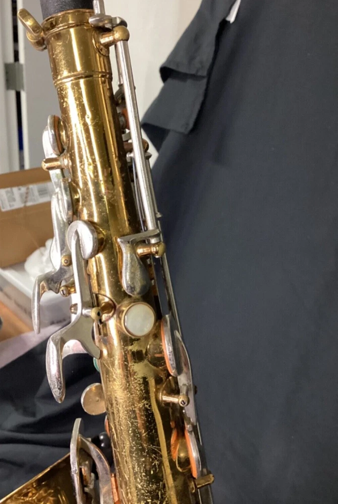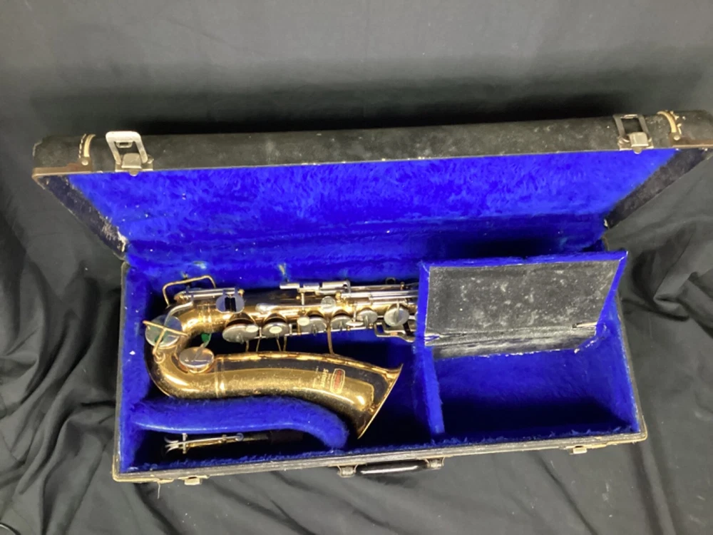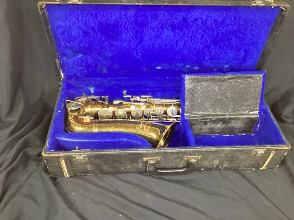 Vintage Selmer Bundy Alto Sax (likely 1960's?). Will need a lot of work to be playable again. Good to use for spare parts or if interested in a big repair/restoration project. Includes Hard Case