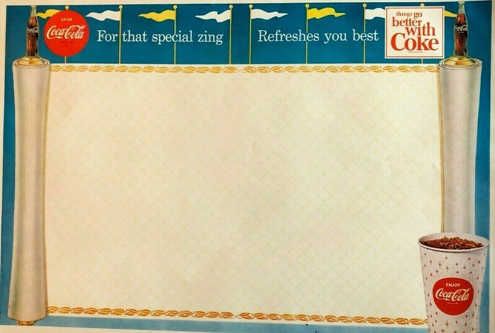 Vintage 1960s Coca-Cola Original NOS Place Mat Better With Coke Zing