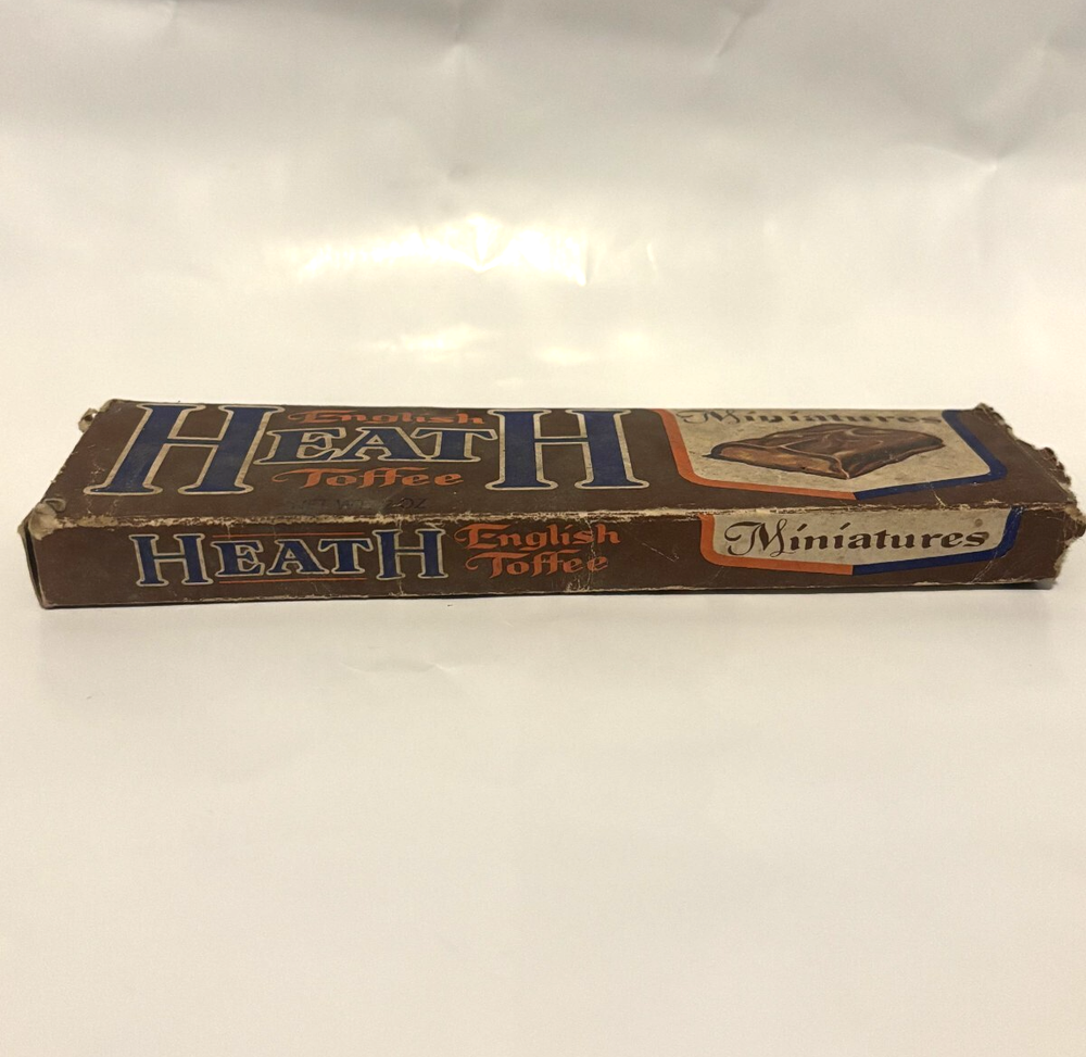 Very rare vintage 1960’s empty Heath Bar Miniatures Candy Bar Box. Item is in decent condition. One of the end flaps is torn off where it would've been opened. Colors still really pop on it. Found under a seat in an abandoned movie theatre. Won't ever come across one of these again. A true collectors item.