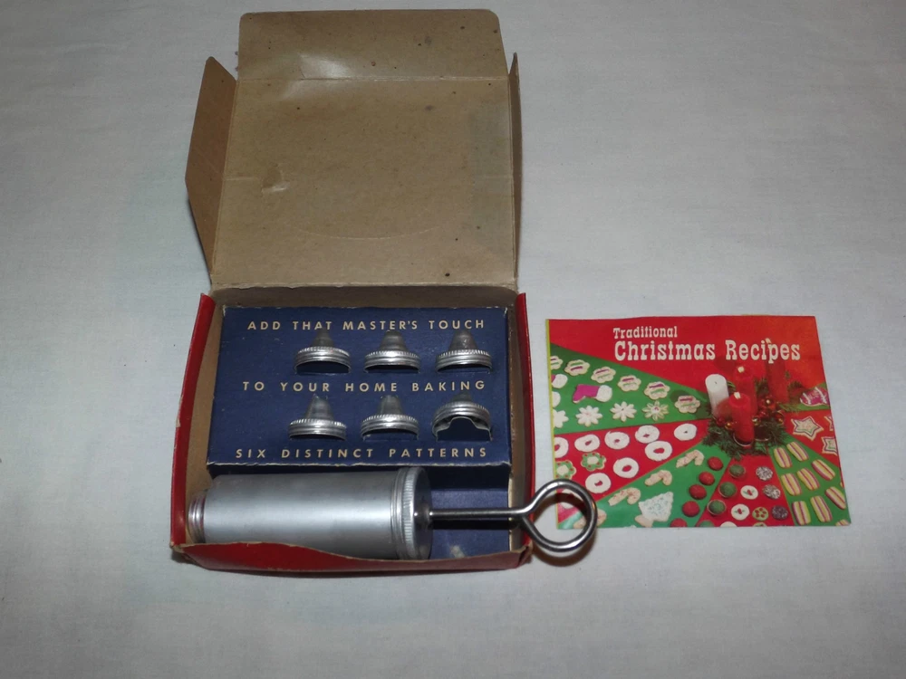 Vintage 1960s Lorraine Aluminum Cake Decorator in Box with Christmas Recipes