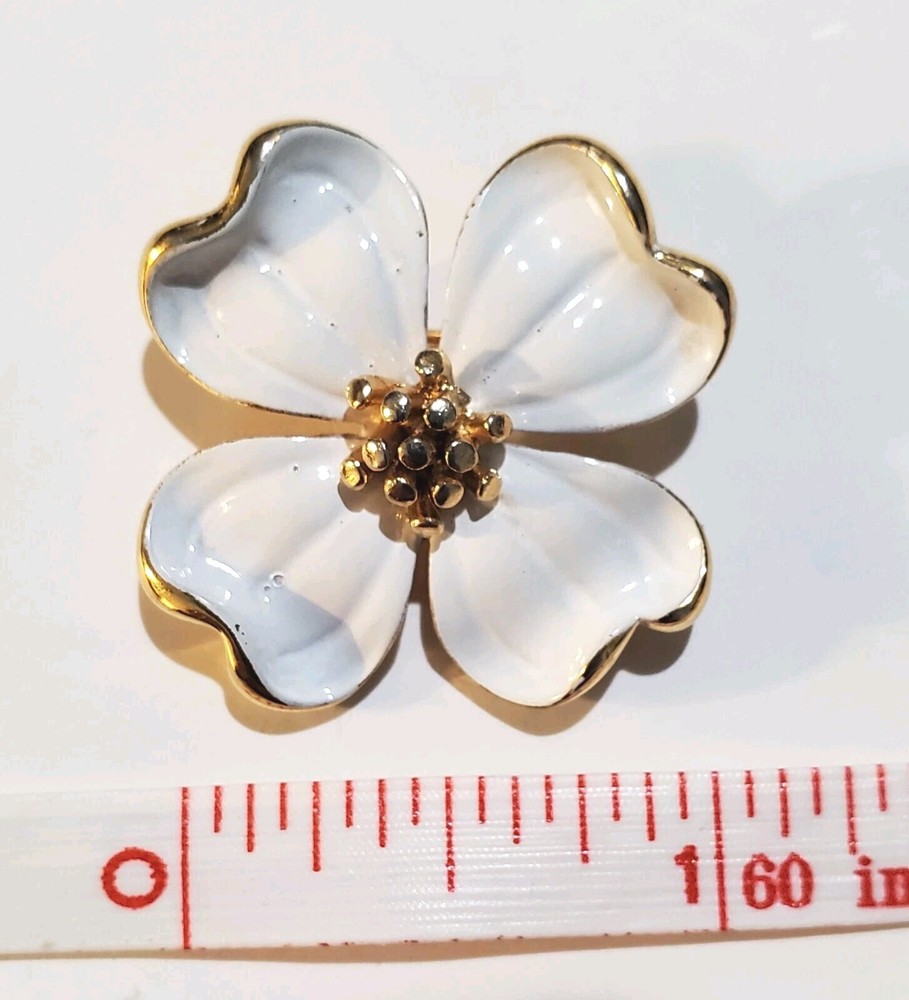 Pre-Owned Condition Used Vintage 1960's Monet Gold Tone Brooch Enamel Dogwood Flower. Please Zoom in Closely to See More Details and to Determine More About the Condition of this Brooch. Enjoy Shopping. Visit Often.