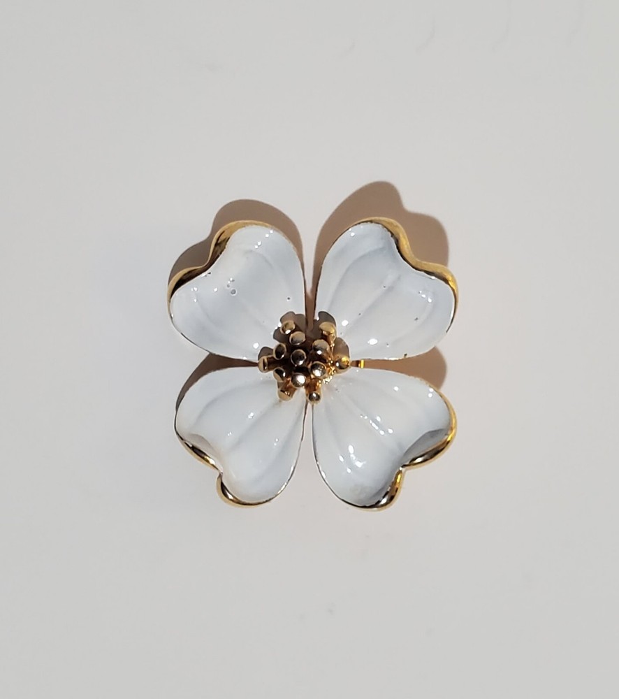 Shape: Dogwood Flower Original/Reproduction: Original Material: Enamel Country/Region of Manufacture: Unknown Signed: Yes Base Metal: Gold Brand: Monet Type: Brooch Vintage: Yes Color: White