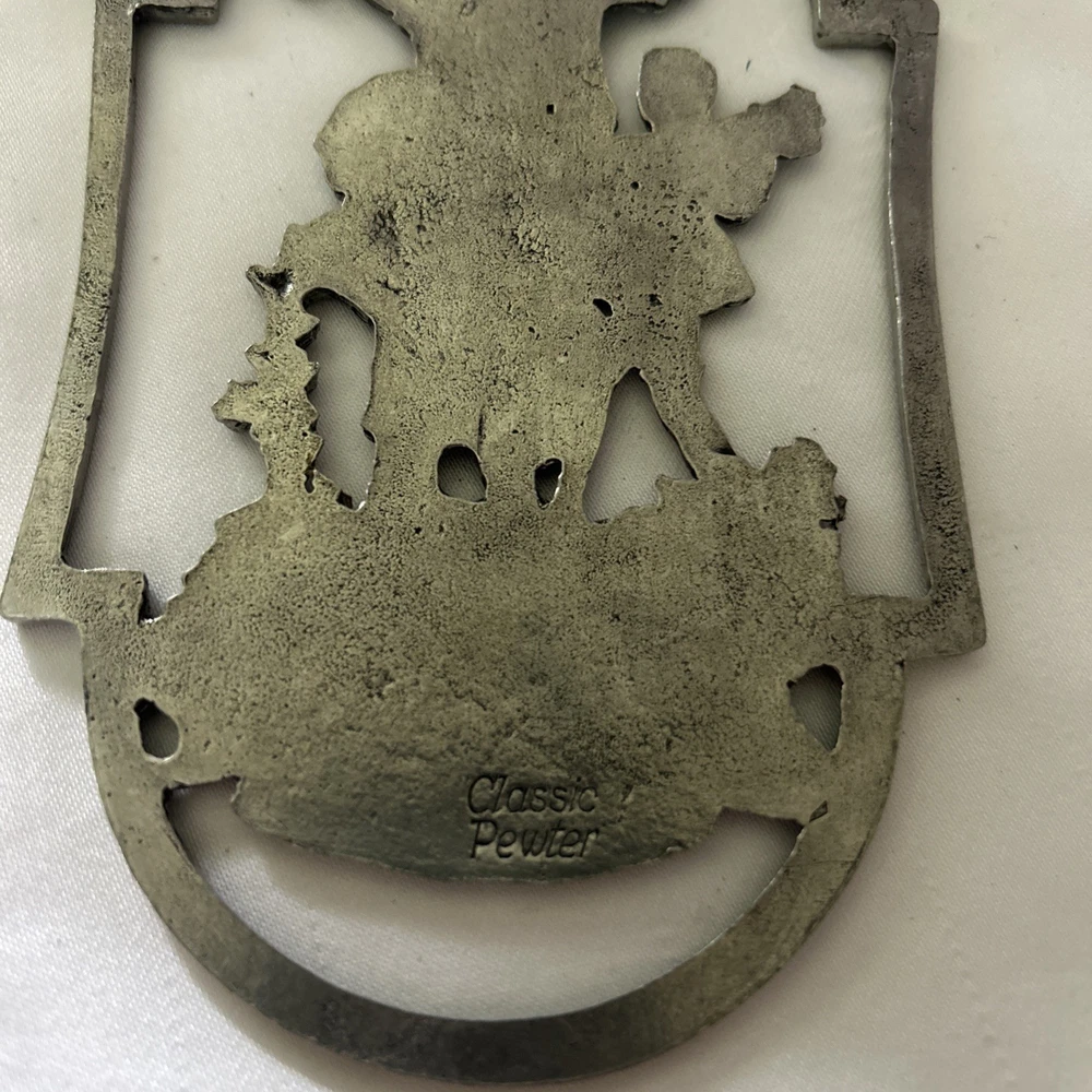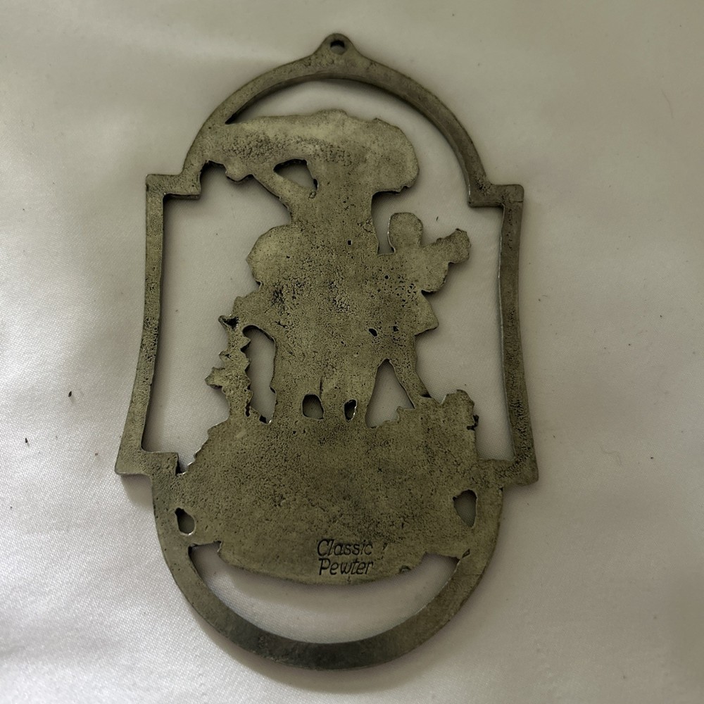 Vintage 1960s Pewter Wall Plaque Door Hanger West Germany Farmhouse Decor. Condition is Used. Shipped with USPS Ground Advantage.