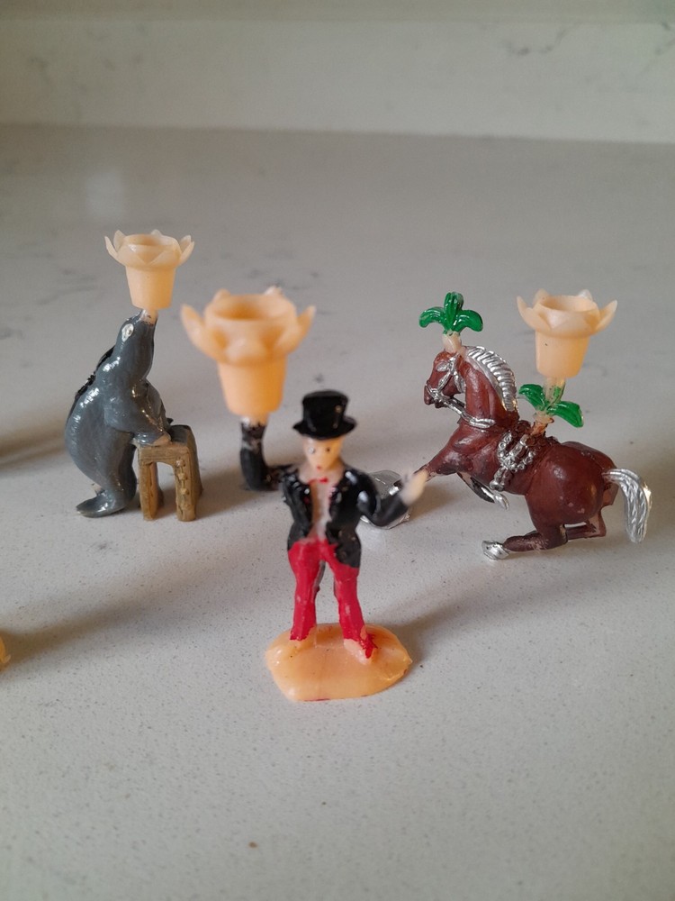 Vintage 1960s Plastic Hong Kong Circus Cake Topper Decorations Strongman Clown