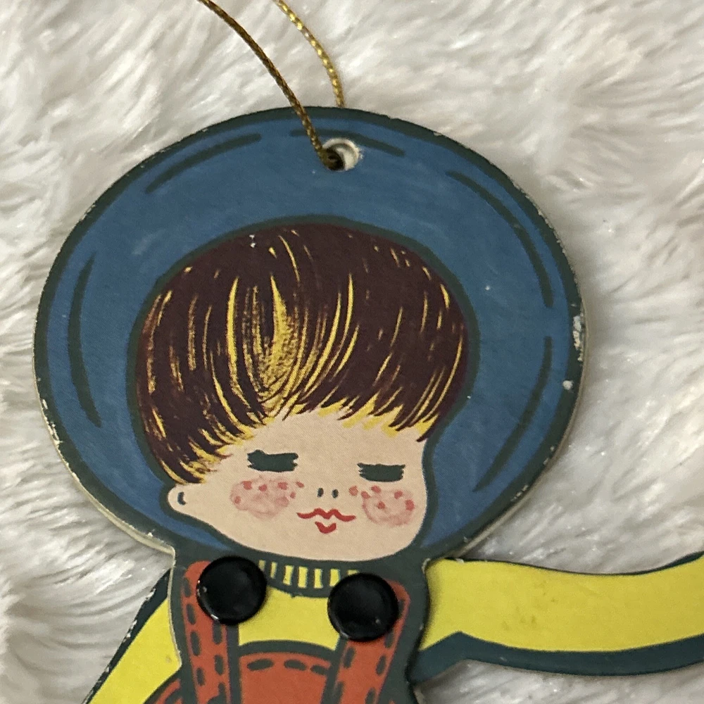 Add a touch of nostalgia to your holiday decor with these rare PIXIE Japanese moveable die-cut paper ornaments. Originating from the 1960s, these charming figures are expertly crafted from cardboard, showcasing intricate details that bring the character of a young boy to life. The ornament's vintage appeal is undeniable, making it a perfect addition to any Christmas collection. With their seasonal theme, these unbranded ornaments are designed to enhance the festive spirit of your home. Manufactured in Japan, they reflect the quality and craftsmanship of the era. Celebrate the Christmas season with a piece of history that is sure to spark conversation and admiration from guests. EUC Minor wear from age