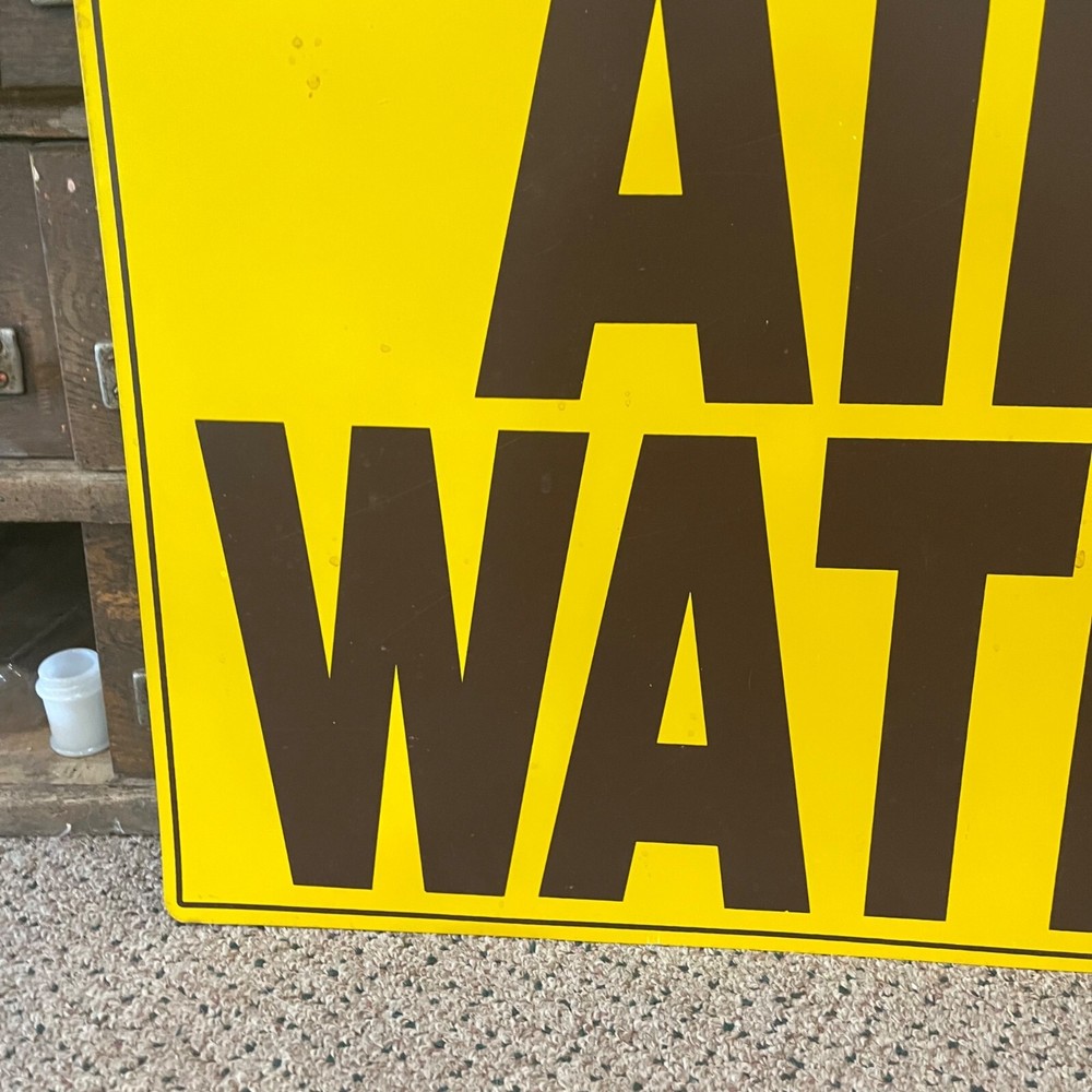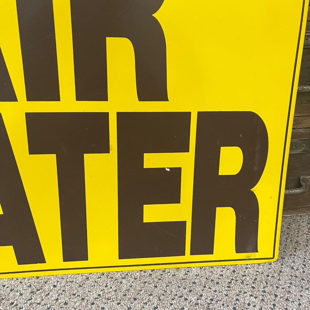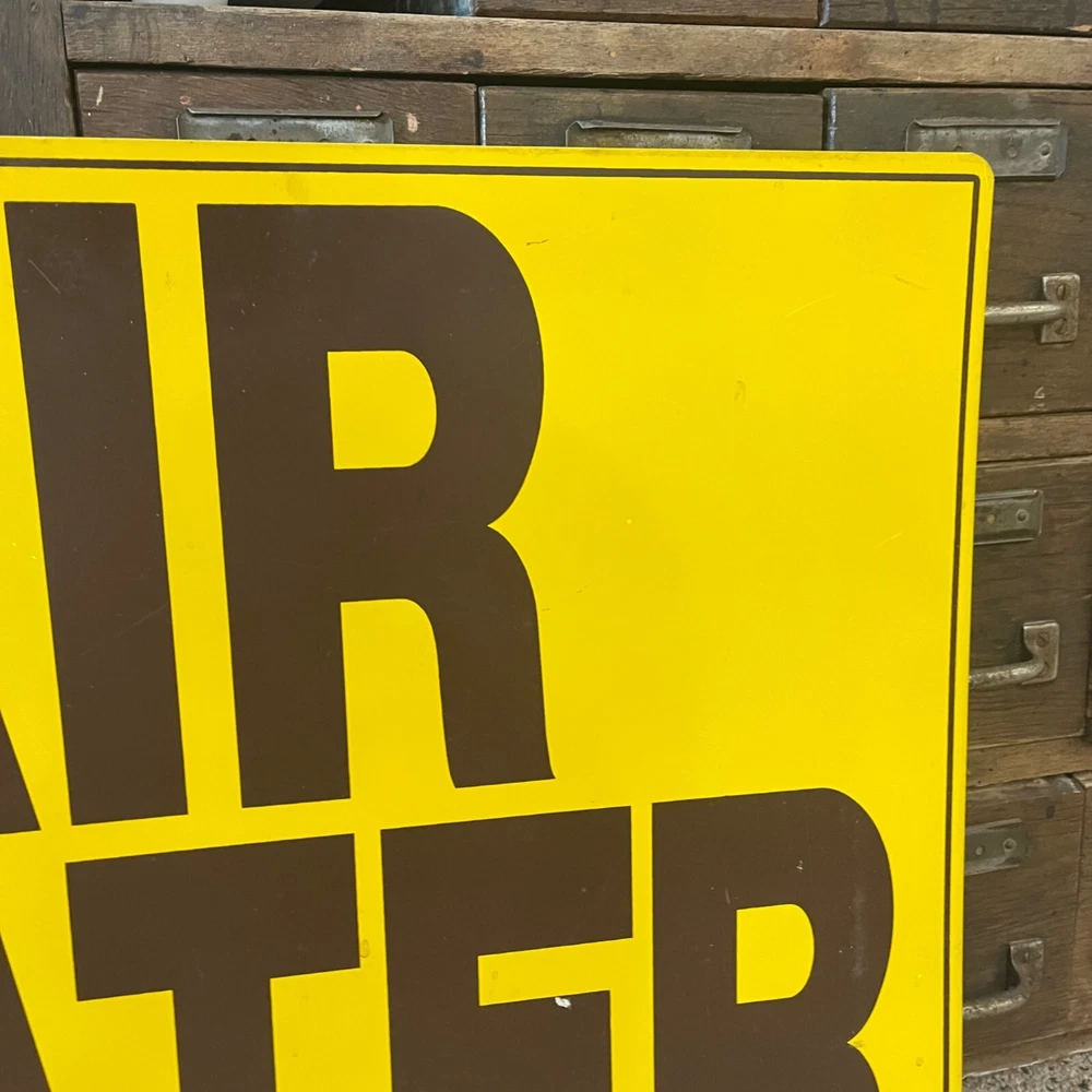 Vintage 1960s Yellow Air & Water Sign Service Station Air Meter Sign Measures 24" by 18" Few light scuffs / scratches but good overall shape! We offer combined shipping. We can refund the shipping difference after the fact on multiple orders or add items to your cart and select "request total" All items are available for local pickup as well at Brothers Antiques, Fond du Lac, Wisconsin