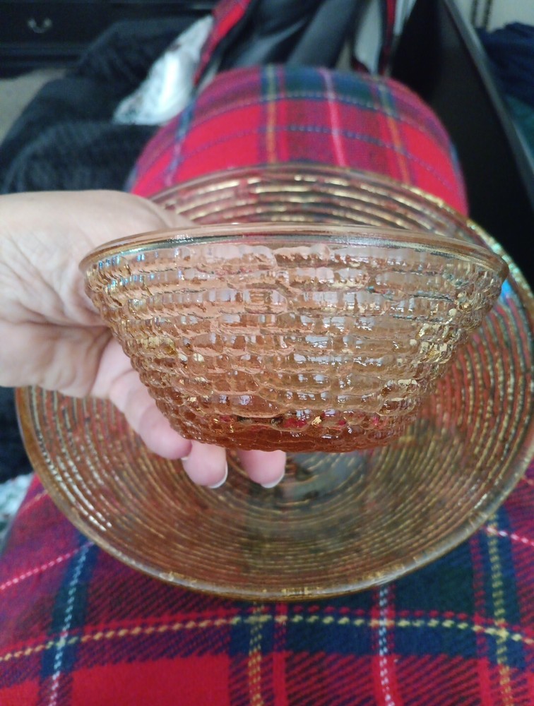 This vintage Anchor Hocking set is a gorgeous retro find! The honey gold glass has a warm, nostalgic charm, and the chip-and-dip design is both stylish and practical. Perfect for parties or displaying as a collector’s piece—it’s sturdy, elegant, and totally timeless. Love the mid-century vibes!