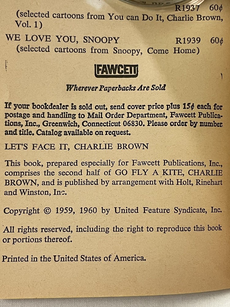 Format:PaperbackGenre:Comics, HumorPublication Year:1968Book Title:Let's Face it Charlie BrownLanguage:EnglishBook Series:PeanutsPublisher:BrowningTopic:BooksAuthor:Charles M. Schulz