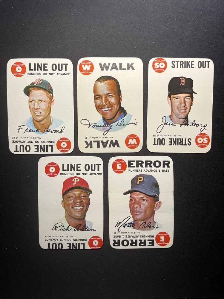 Vintage 1968 Topps Baseball Game Cards set includes 5 original cards from Major League (MLB). Manufactured by Topps in the United States, these sports trading cards are from the 1968 season. The cards feature insert designs and are in English language. This vintage set is a valuable addition to any baseball card collection.