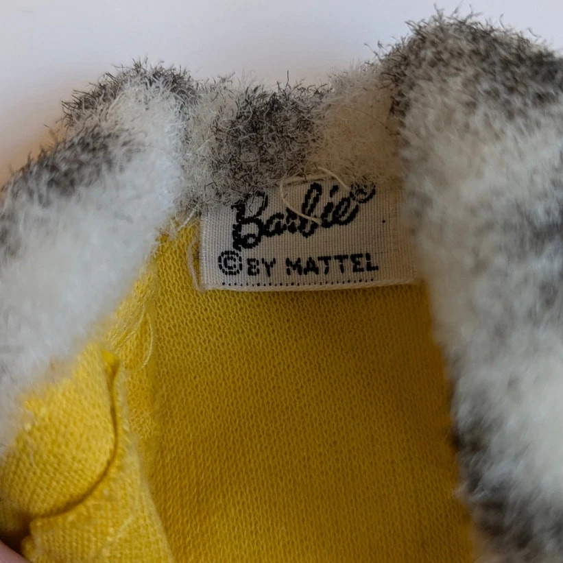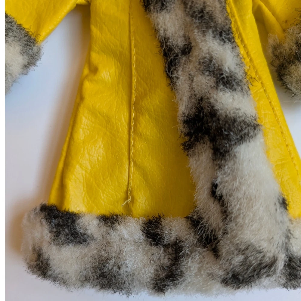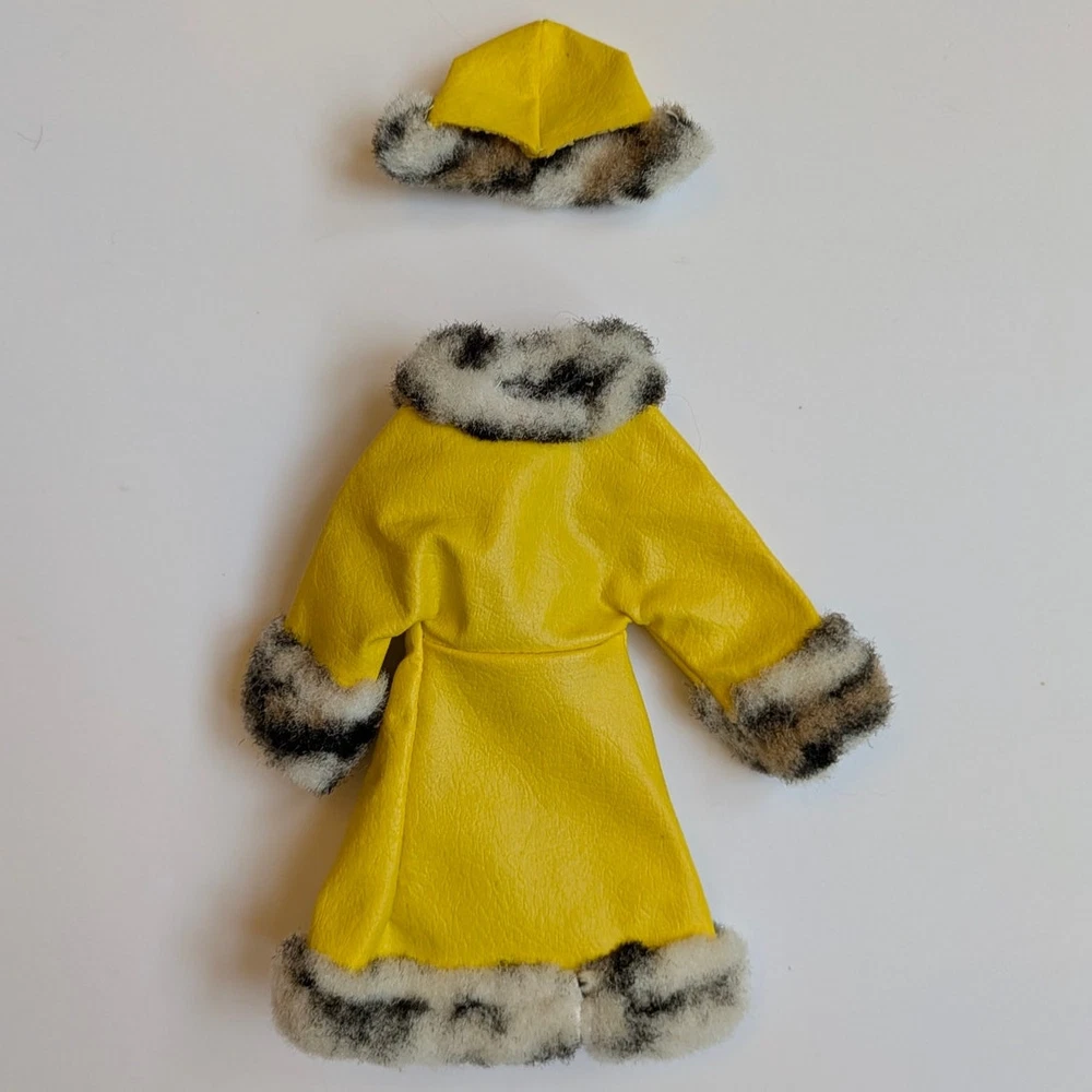 Vintage 1970s Barbie Great Coat #1459 clothing play set. Includes yellow coat with animal print fur trum, matching hat and yellow shoes. Condition: Great vintage condition!