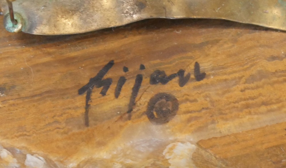 This stunning Brutalist sculpture by Bijan Bahar is a true vintage gem! The mix of bronze, copper, and brass creates a gorgeous textured effect, especially with the raindrop theme. The quartz base adds a touch of natural elegance, and the detailed scene of children under an umbrella is so charming. Perfect condition for its age—would make an eye-catching statement in any home. Love the 70s artistic flair!