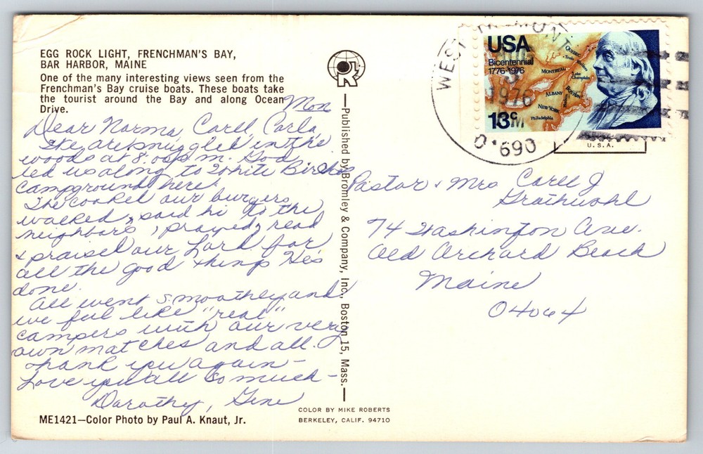Vintage 1970s Egg Rock Light Frenchmans Bay Cruise Bar Harbor ME Postcard AA24