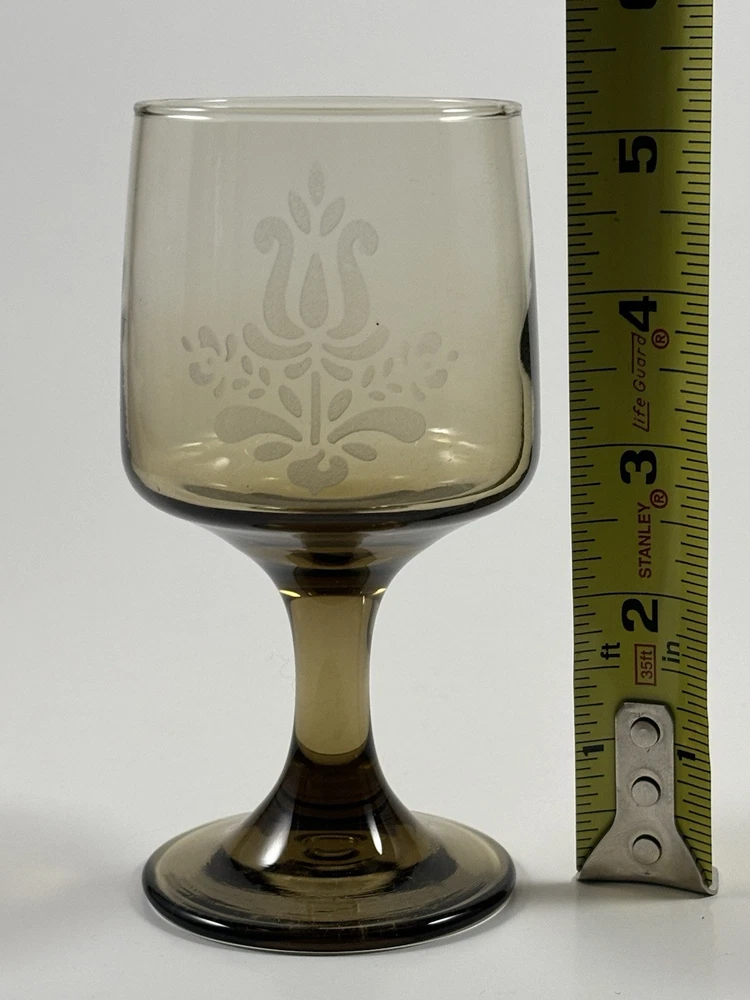 Vintage 1970s Pfaltzgraff Village Brown Glass Pedestal Wine Glasses Set of 7