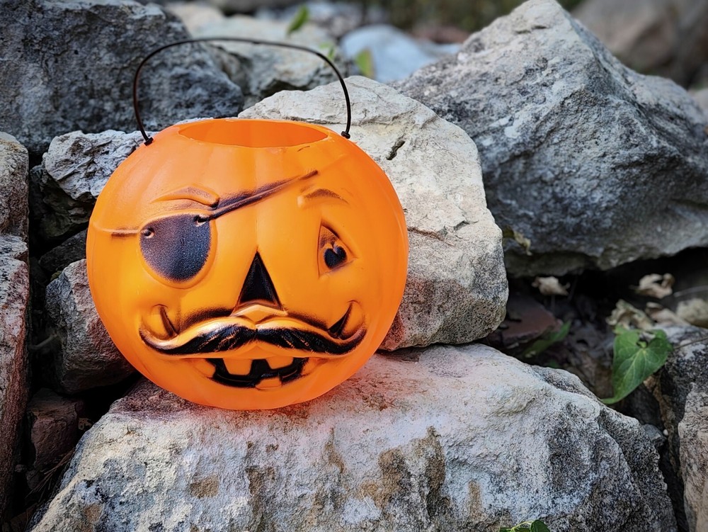 Vintage 1970s Pirate Candy Bucket Blow Mold Pumpkin by General Foam Plastics