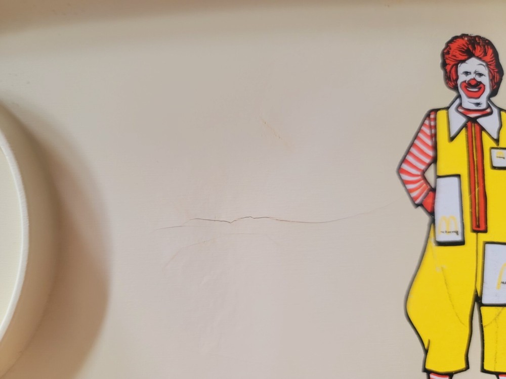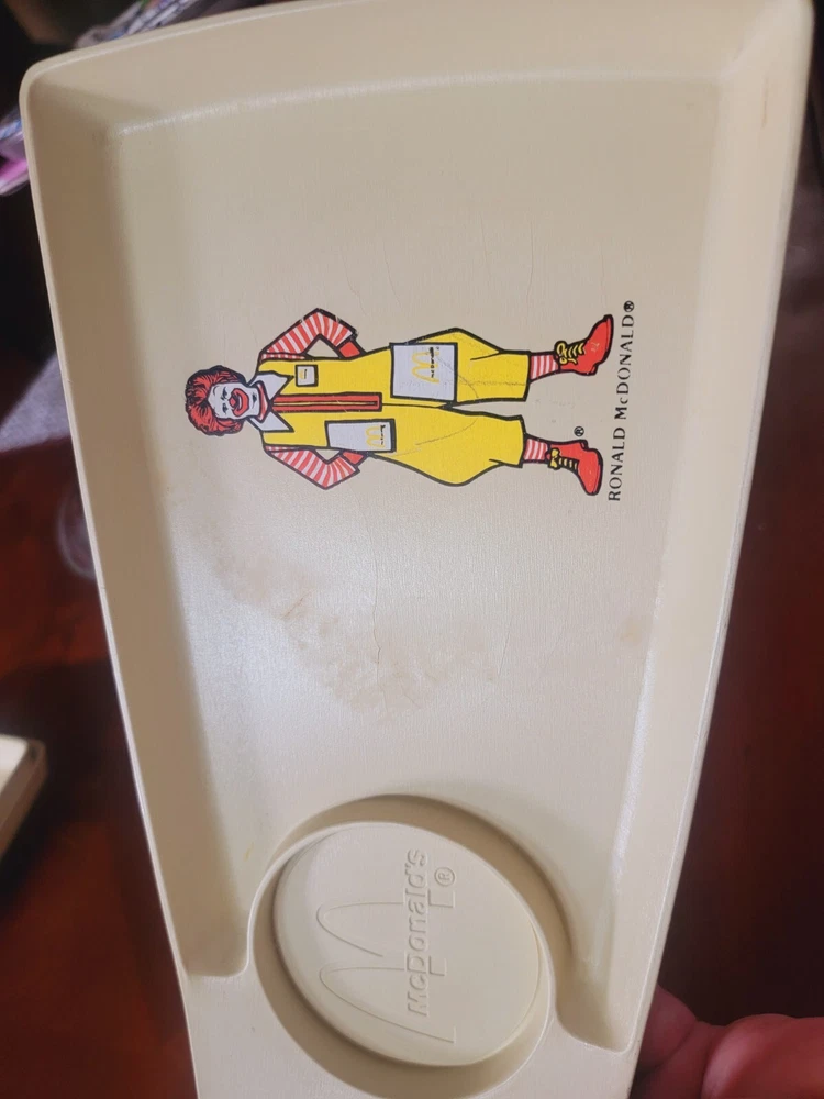 Capture a slice of fast food history with this vintage 1970's McDonald's Happy Meal Tray, featuring the iconic Ronald McDonald. Produced by Simon Marketing, this tray is a nostalgic nod to the golden era of restaurant memorabilia. Ideal for collectors and enthusiasts of McDonald's legacy, it's a vibrant piece that celebrates the brand's storied past.Crafted for durability and designed to make a statement, this tray is a must-have for those who appreciate the art of advertising and the cultural impact of restaurant chains. Whether displayed in your home, office, or restaurant-themed collection, it's sure to be a conversation starter and a beloved piece of Americana.